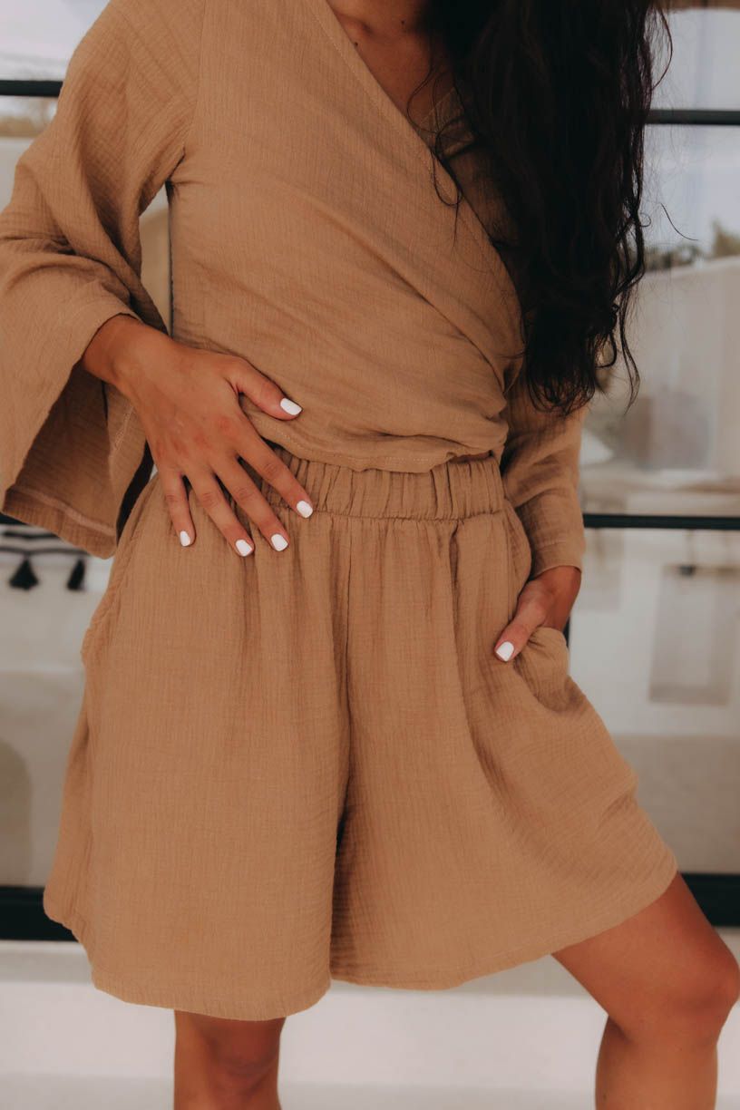 Mušelínový top Akosua okouzlí nápaditými širokými rukávy a sofistikovaným zavazováním na zádech. Ležérní, elegantní a ideální na letní dobrodružství.