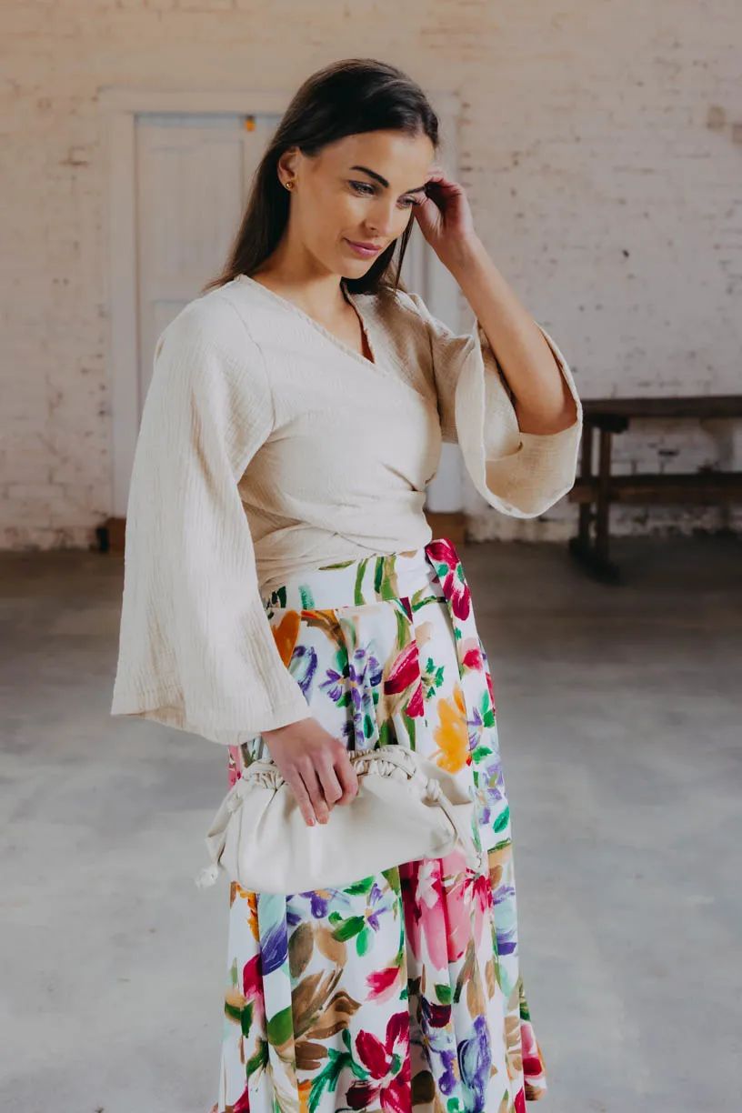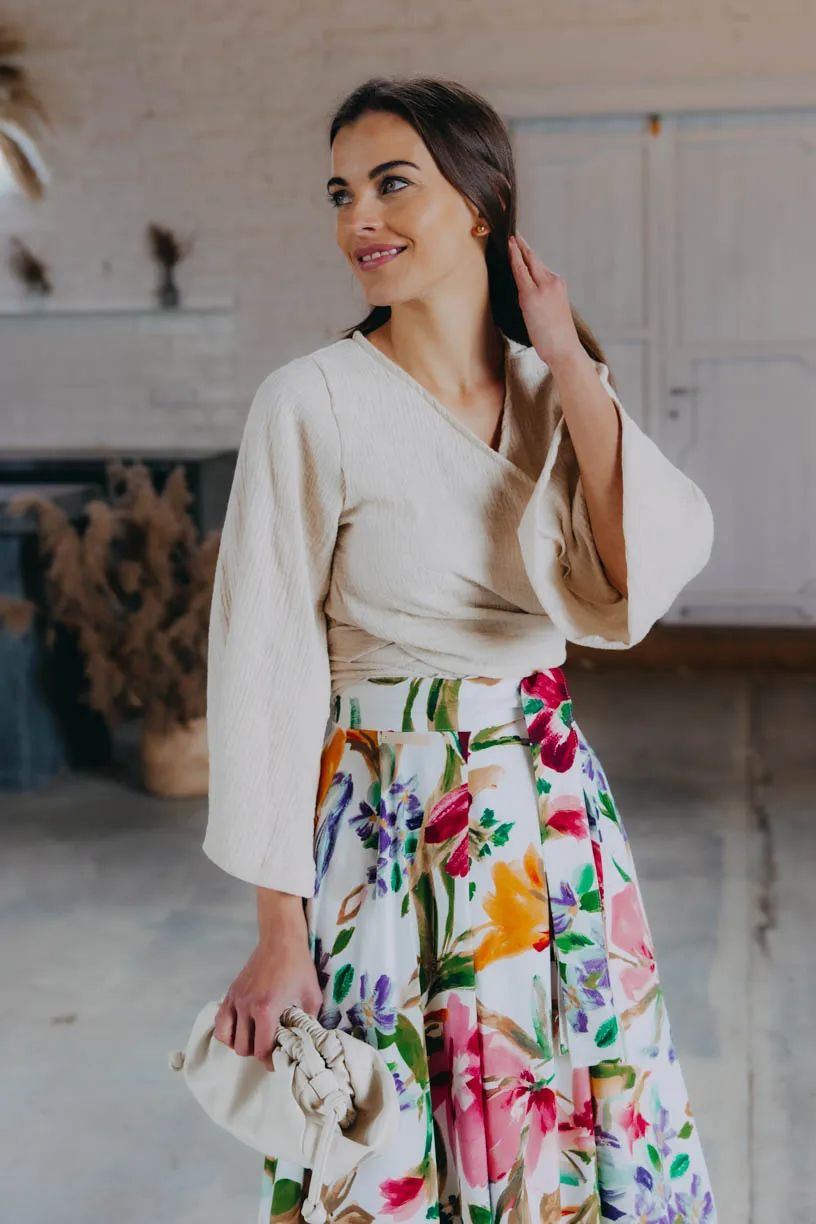 Akosua má doslova podmanivý střih. Široké zvonové rukávy upoutají na první pohled, ale především budete mít díky nim pocit nekonečné volnosti. Top má velmi sofistikovaně řešené zavazování na zádech a přizpůsobí se tak opravdu každé ženské postavě.