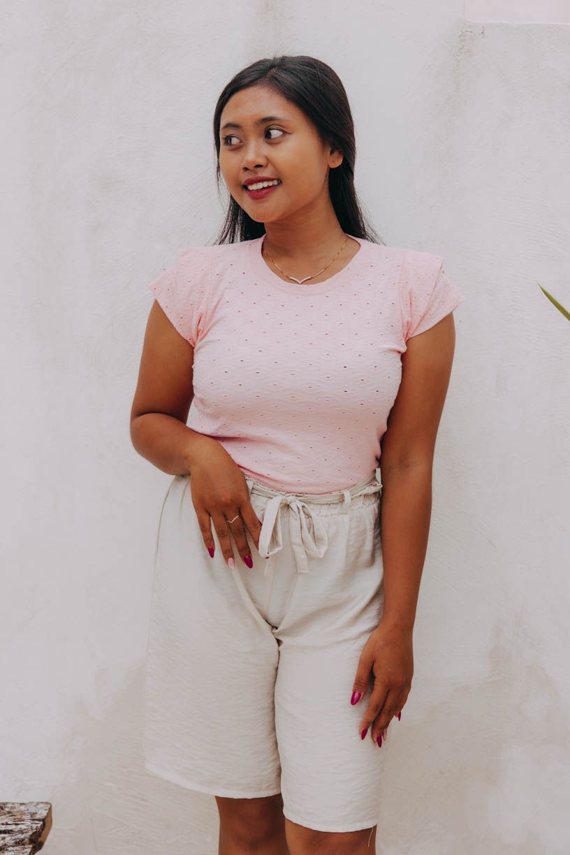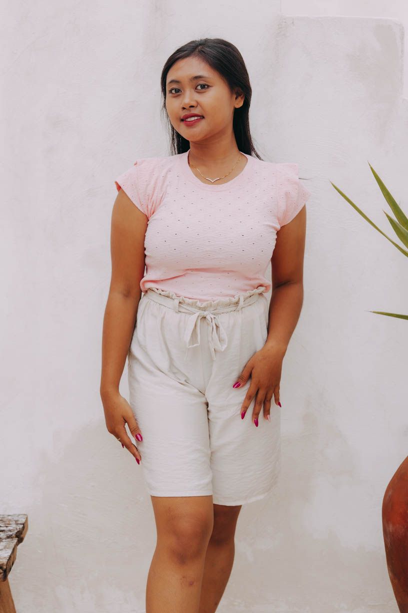 Basic kousek na balijský způsob. Top Ellora je sice kratší, ale dosti dlouhý na to, aby se v kalhotách i sukních s vyšším pasem dal pohodlně zastrčit.