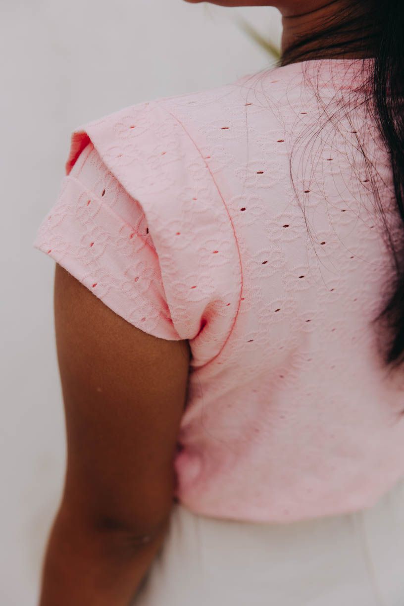 Jeho trumfem jsou nápadné navrstvené rukávy, kulatý výstřih, který vytváří pěknou symetrickou linii kolem krku, a zajímavý dírkovaný materiál. Díky této kombinaci jej budete ze skříně či dovolenkového kufru vytahovat opravdu často.
