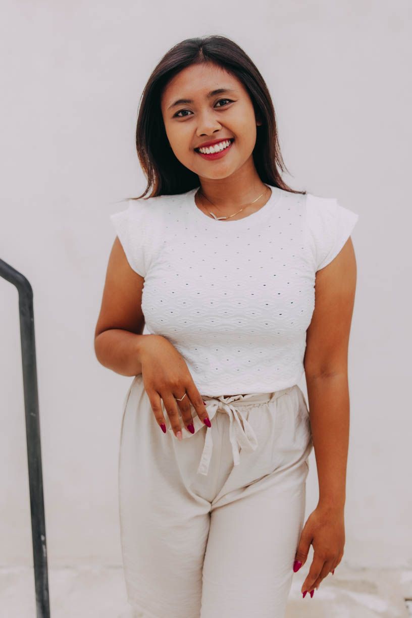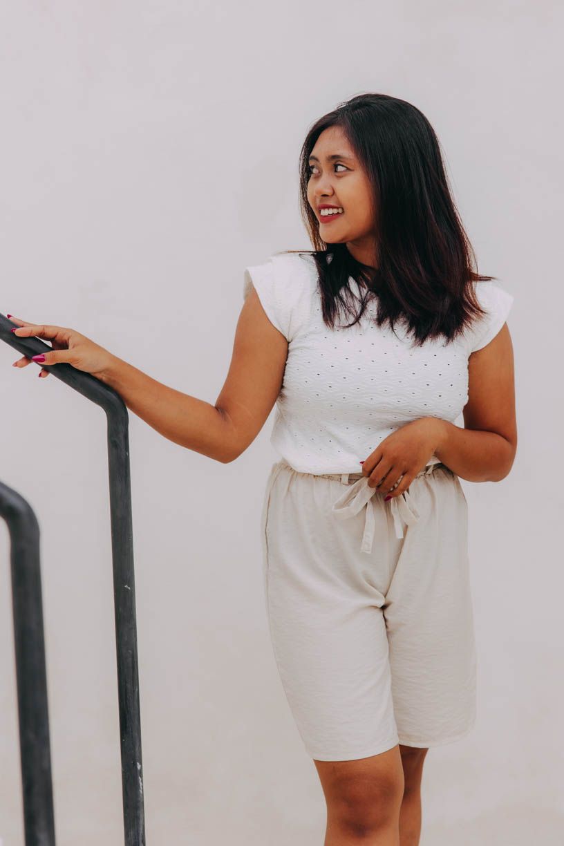 Basic kousek na balijský způsob. Top Ellora je sice kratší, ale dosti dlouhý na to, aby se v kalhotách i sukních s vyšším pasem dal pohodlně zastrčit.