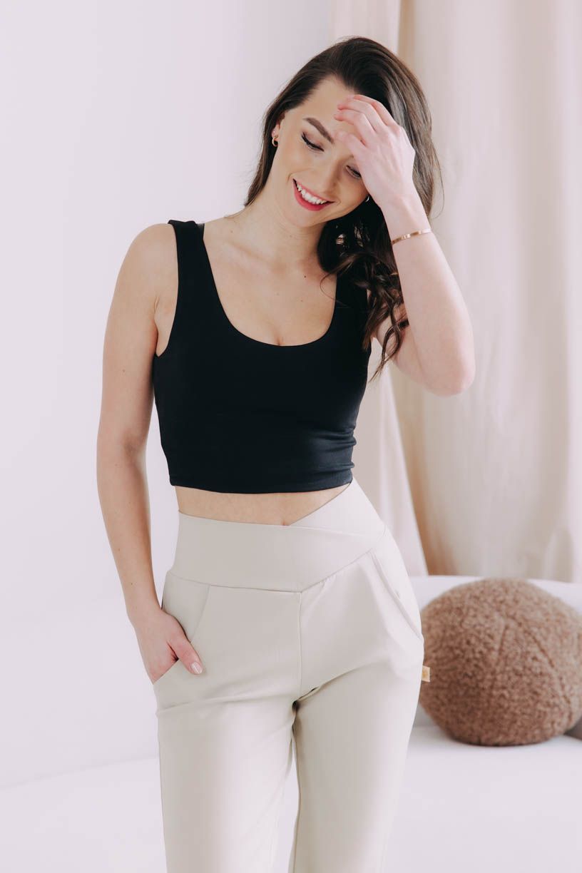 V crop topu Hema zvládnete i tropické dny levou zadní. Lehký a pružný minimalistický kousek se širokými ramínky bude radost kombinovat.