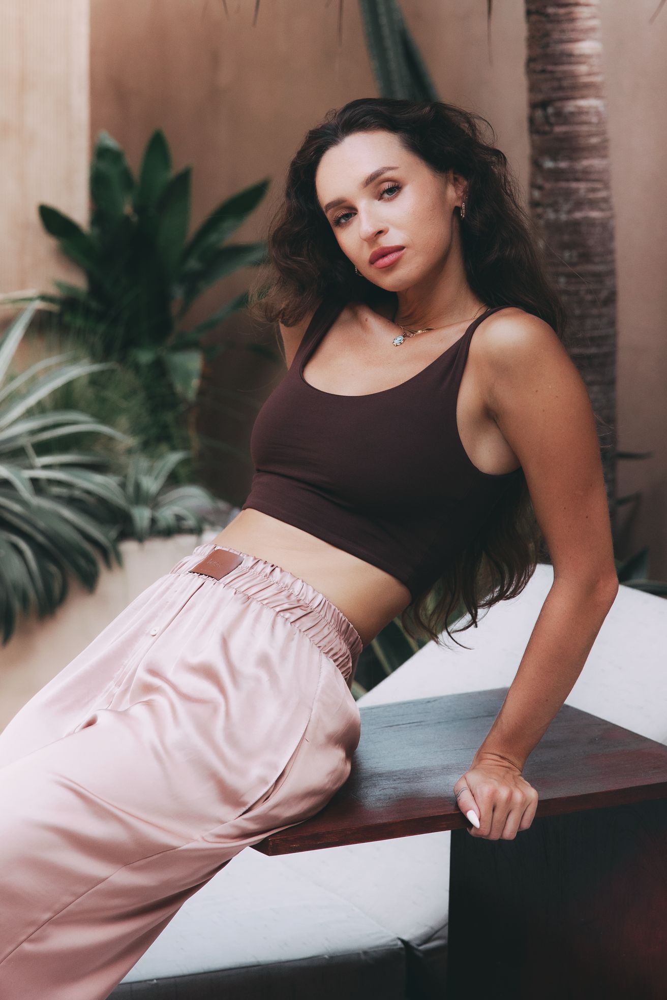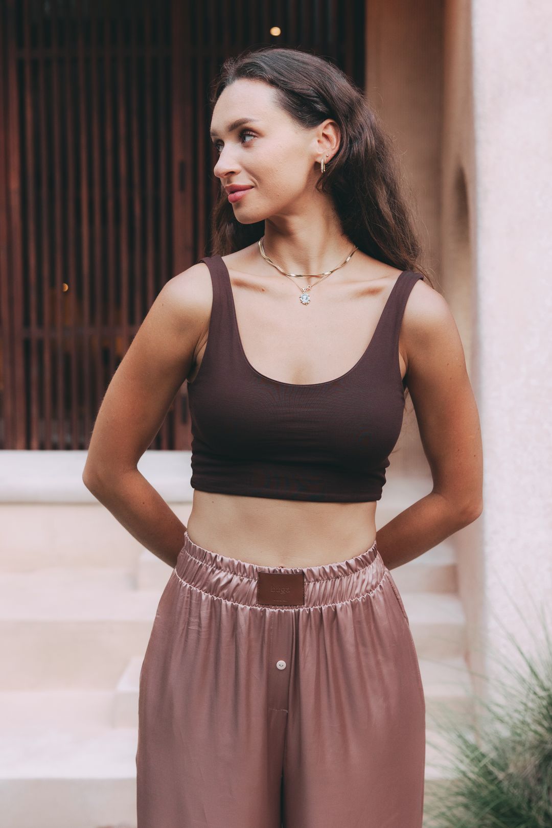 V crop topu Hema zvládnete i tropické dny levou zadní. Lehký a pružný minimalistický kousek se širokými ramínky bude radost kombinovat.