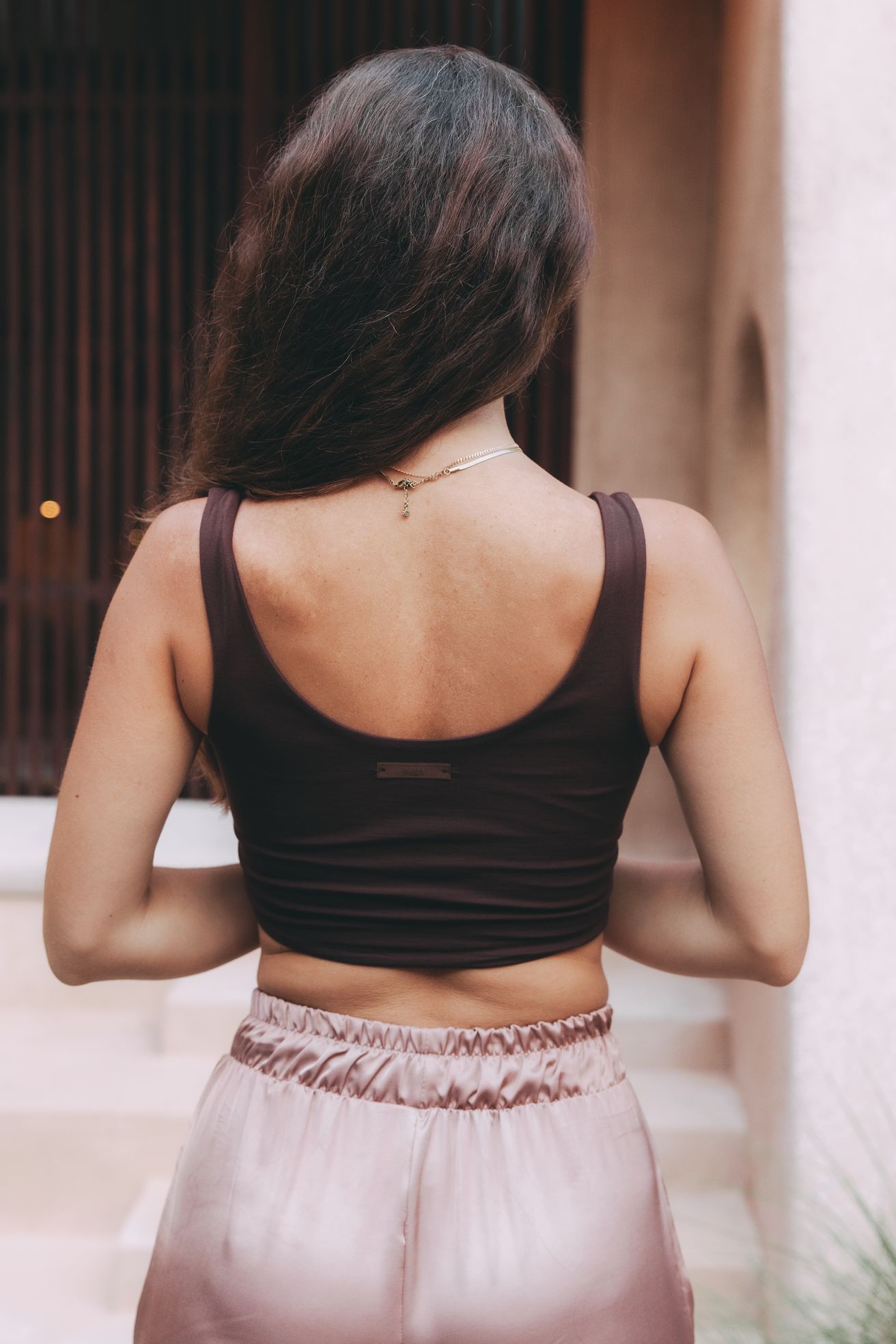 Tento pružný minimalistický top s kulatým výstřihem vepředu i na zádech vám poskytne maximální komfort a svobodu pohybu, ať už se vypravíte na pláž, piknik, nebo jen tak na procházku po městě či dovolenkovém letovisku. Jeho široká ramínka se postarají o příjemné nošení během celého dne.