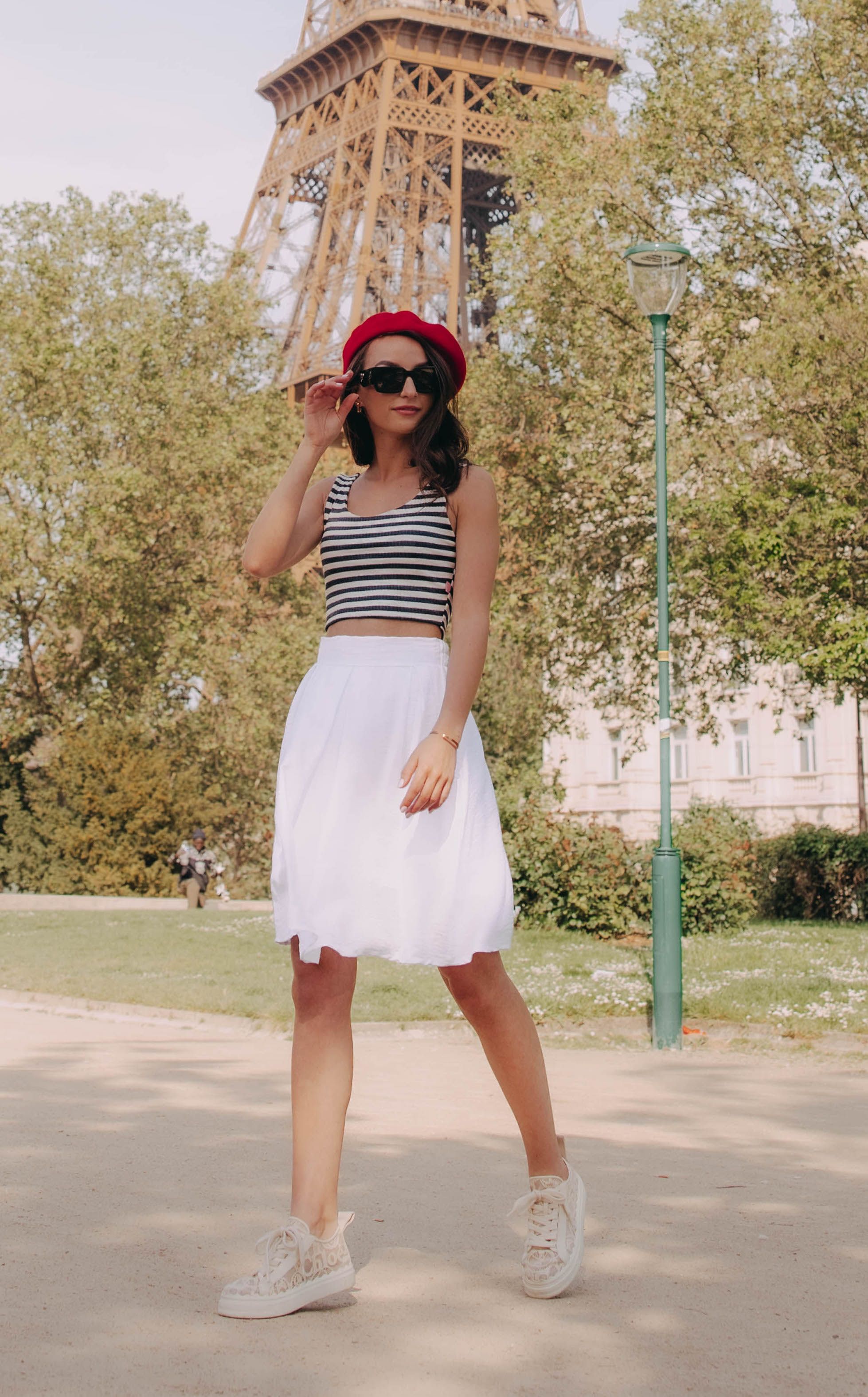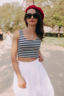 Tento pružný minimalistický top s kulatým výstřihem vepředu i na zádech vám poskytne maximální komfort a svobodu pohybu, ať už se vypravíte na pláž, piknik, nebo jen tak na procházku po městě či dovolenkovém letovisku. Jeho široká ramínka se postarají o příjemné nošení během celého dne.