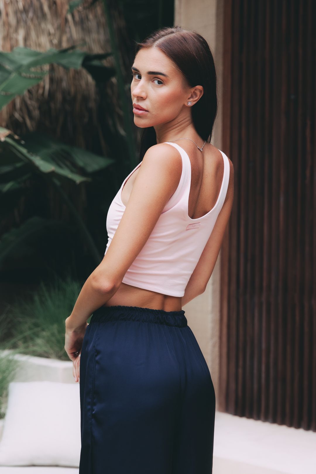 V crop topu Hema zvládnete i tropické dny levou zadní. Lehký a pružný minimalistický kousek se širokými ramínky bude radost kombinovat.