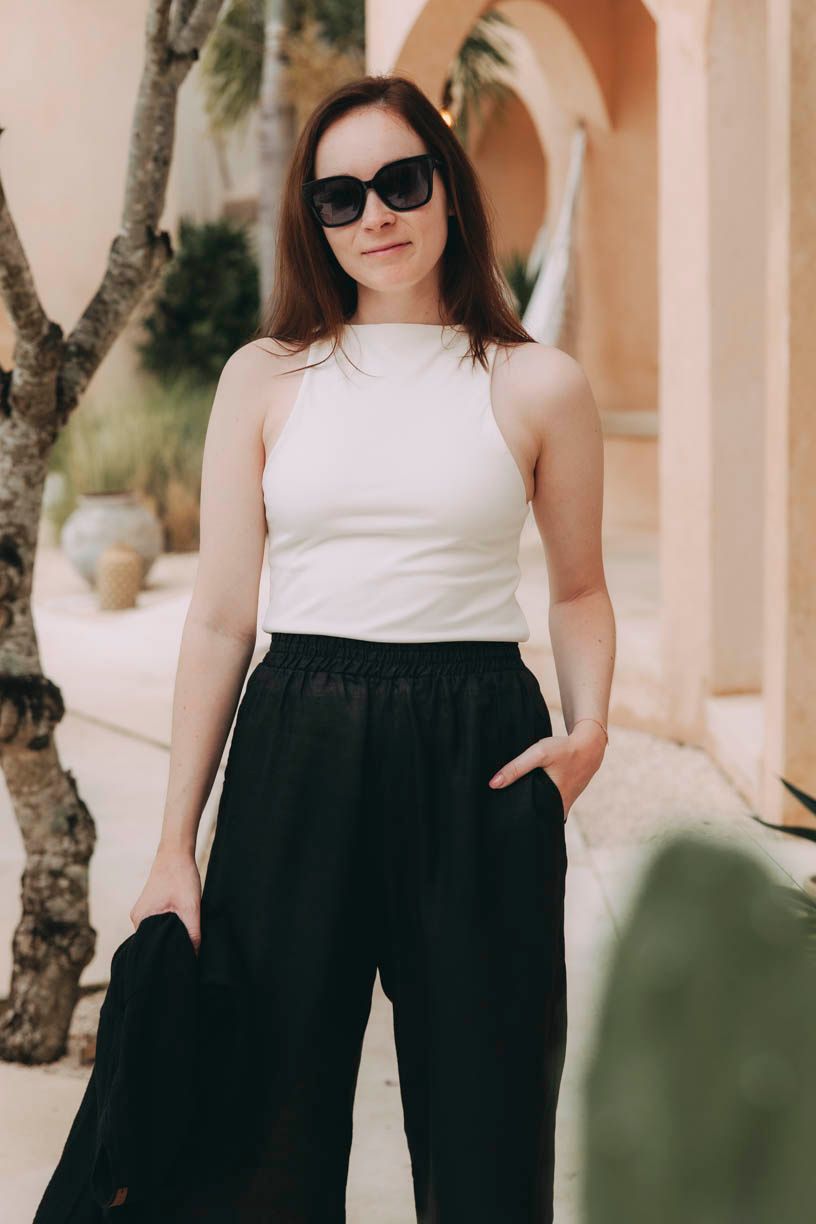 Laima je top, který nedělá kompromisy. Není to jen střihem, ale i materiálem, díky nimž si to může dovolit. Vykrojené průramky vám totiž poskytnou nekonečnou spoustu volnosti v pohybu, a nadto krásně zdůrazní linii kolem ramen.