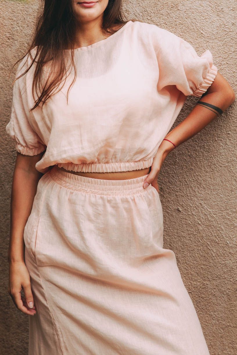 Širší kulatý výstřih dokonale doplňují volné balonové rukávky zakončené řasením a gumou, stejně jako spodní lem. Máte tak zcela ve své režii, jak mocný efekt podkasání vykouzlíte.