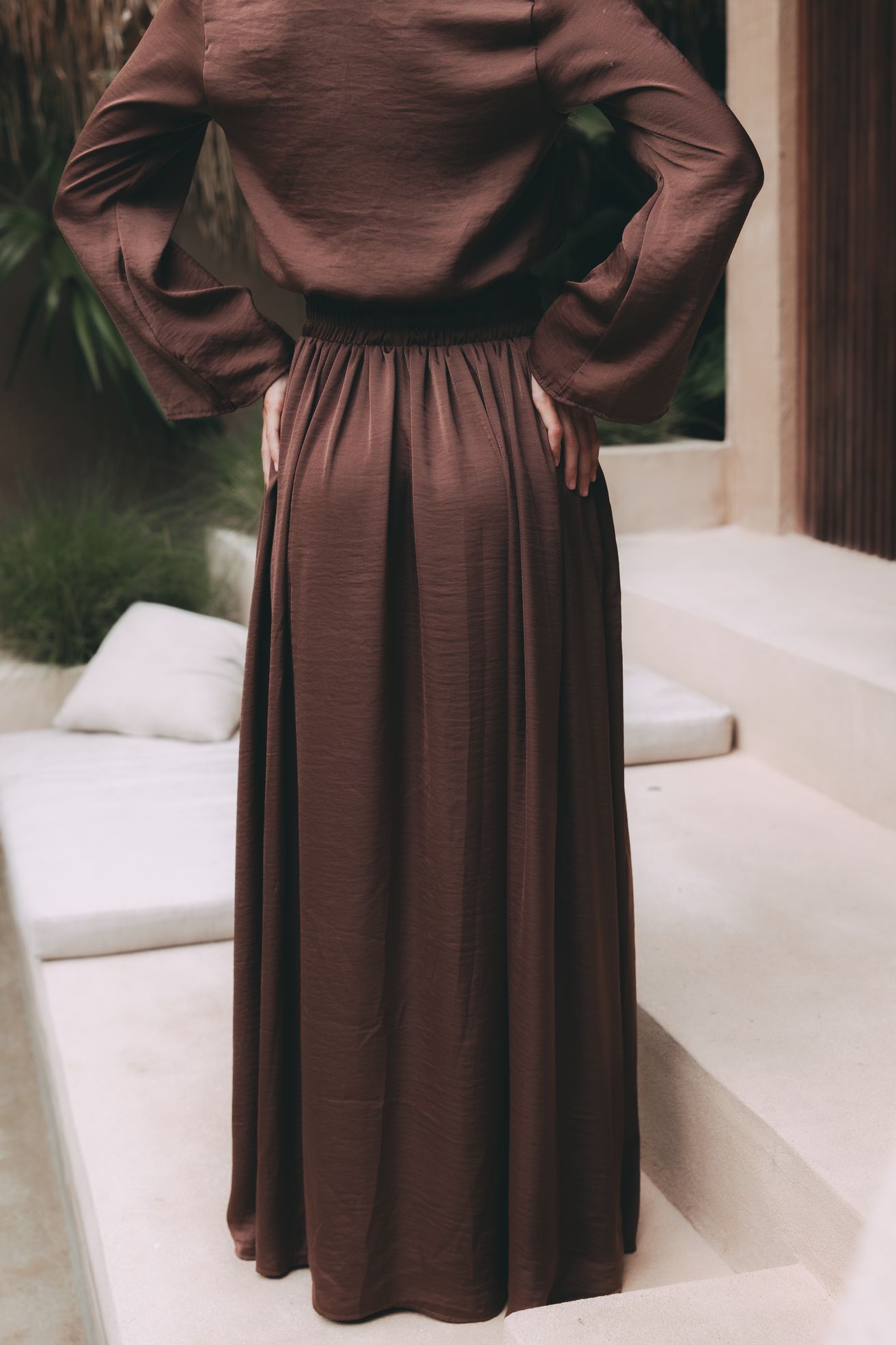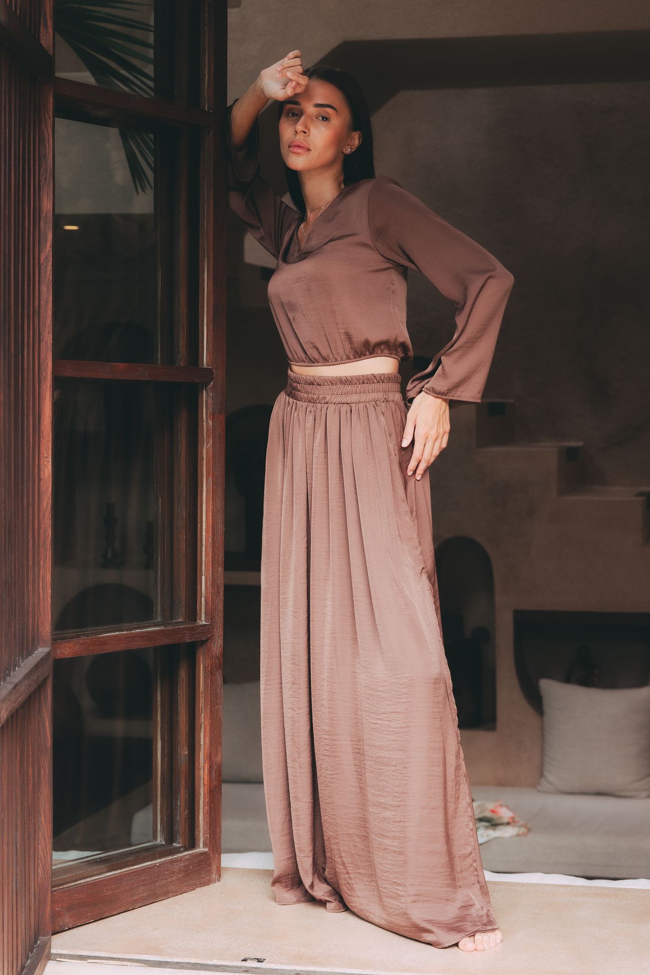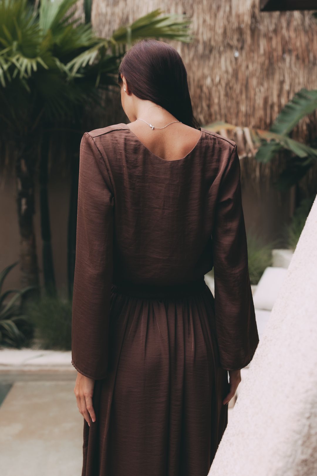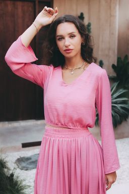 Tohle je top Reta. Kousek, u kterého jsme udělali výjimku a sáhli po polyesteru. Důvod je jednoduchý. Je neuvěřitelně lehoučký, dokonale prodyšný a ani po dlouhé cestě se nezmačká. Zatímco vpředu působí jemně, záda zdobí rafinovaný výstřih do „V“, který přirozeně přitáhne pohledy. Zvonové rukávy mu dodávají nespoutaný boho nádech a s každým vaším gestem vzdušně zatančí. Spolu se sukní Reta tvoří dokonalý pár pro toulky rozpáleným městem i večerní procházky po pláži.