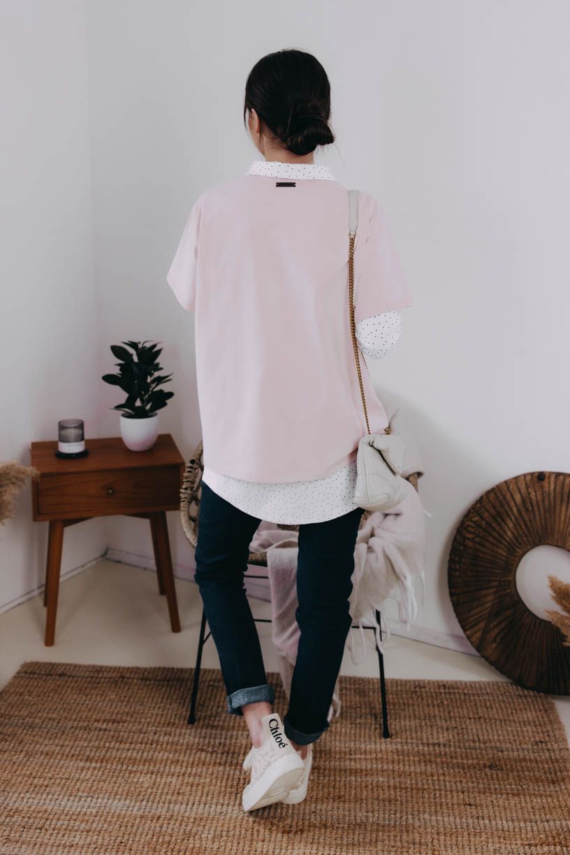 Pro milovnice nejen udržitelné módy, ale i oversized střihů poslouží coby zmíněný základ Gimbya. Klasický kulatý výstřih elegantně doplňují krátké rukávy a výšivka. Vzít se dá opravdu ke všemu – skvěle vypadá s jakoukoliv sukní i kostýmkovými kalhotami, ležérní outfit doplní s odrbanými džínami, pohodu v létě vykouzlí s kraťasy, ale proč si ho vlastně neobléknout klidně i k teplákům nebo legínám.