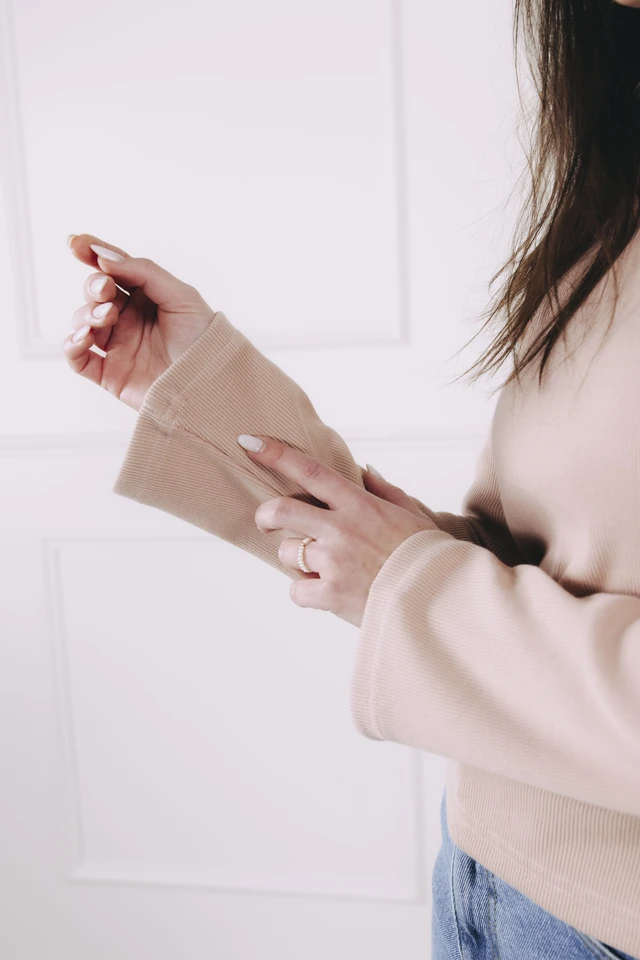 Kousek, který se hodí vždy a ke všemu. Adebola Nude je tričko s dlouhým rukávem, které zvládne práci, volný čas i pohodlí domova.