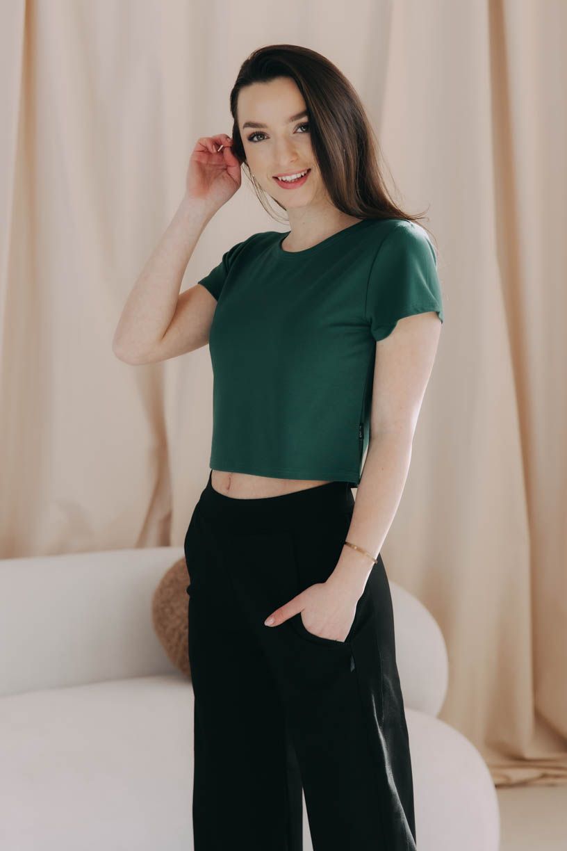 Že se na odhalování bříška a zad dvakrát necítíte? Tenhle šmiklý top si určitě oblíbíte, i když jinak sáhnete spíš po delších tričkách. S sukní nebo kalhotami s vysokým pasem mu to totiž sluší úplně stejně jako odvážnějším kombinacím s nižšími kousky.