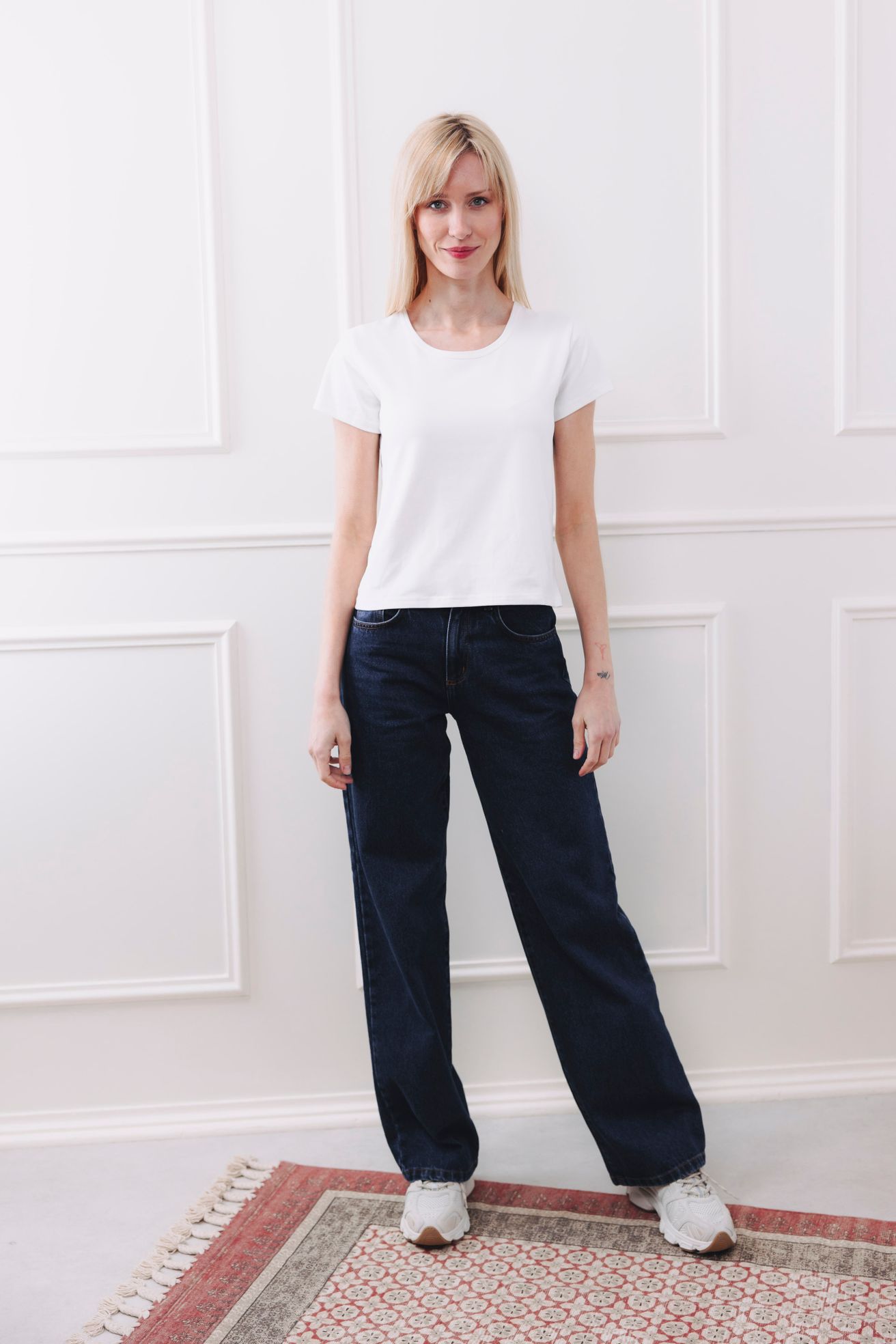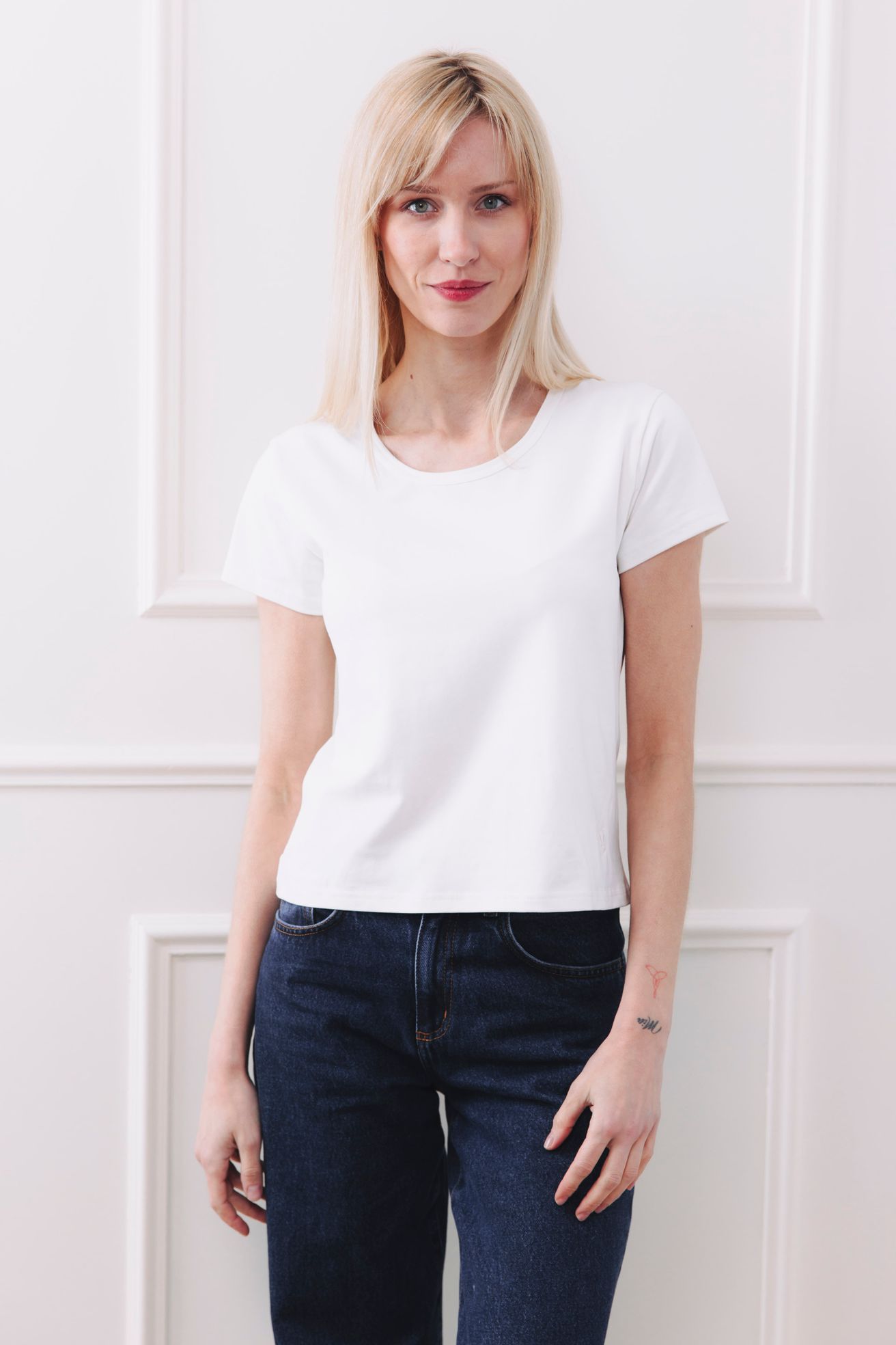 - Střih: Samozřejmě dobře padnoucí. Pro milovnice klasiky i pro ty, které dávají přednost prodloužené délce. Kulatý výstřih je hezky čistě lemovaný – drží tvar a nevytahá se.