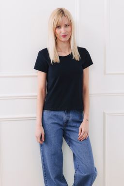 - Střih: Samozřejmě dobře padnoucí. Pro milovnice klasiky i pro ty, které dávají přednost prodloužené délce. Kulatý výstřih je hezky čistě lemovaný – drží tvar a nevytahá se.