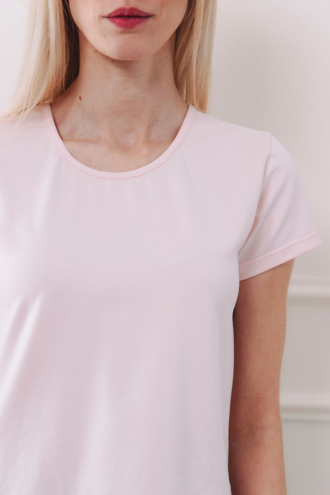 - Střih: Samozřejmě dobře padnoucí. Pro milovnice klasiky i pro ty, které dávají přednost prodloužené délce. Kulatý výstřih je hezky čistě lemovaný – drží tvar a nevytahá se.