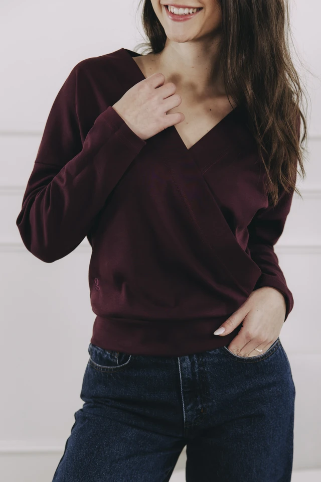 Díky volnějšímu překřížení na přední straně doporučujeme volit menší velikost, než si běžně kupujete. Tričko vám díky tomu lépe přilne k tělu a perfektně sedne.