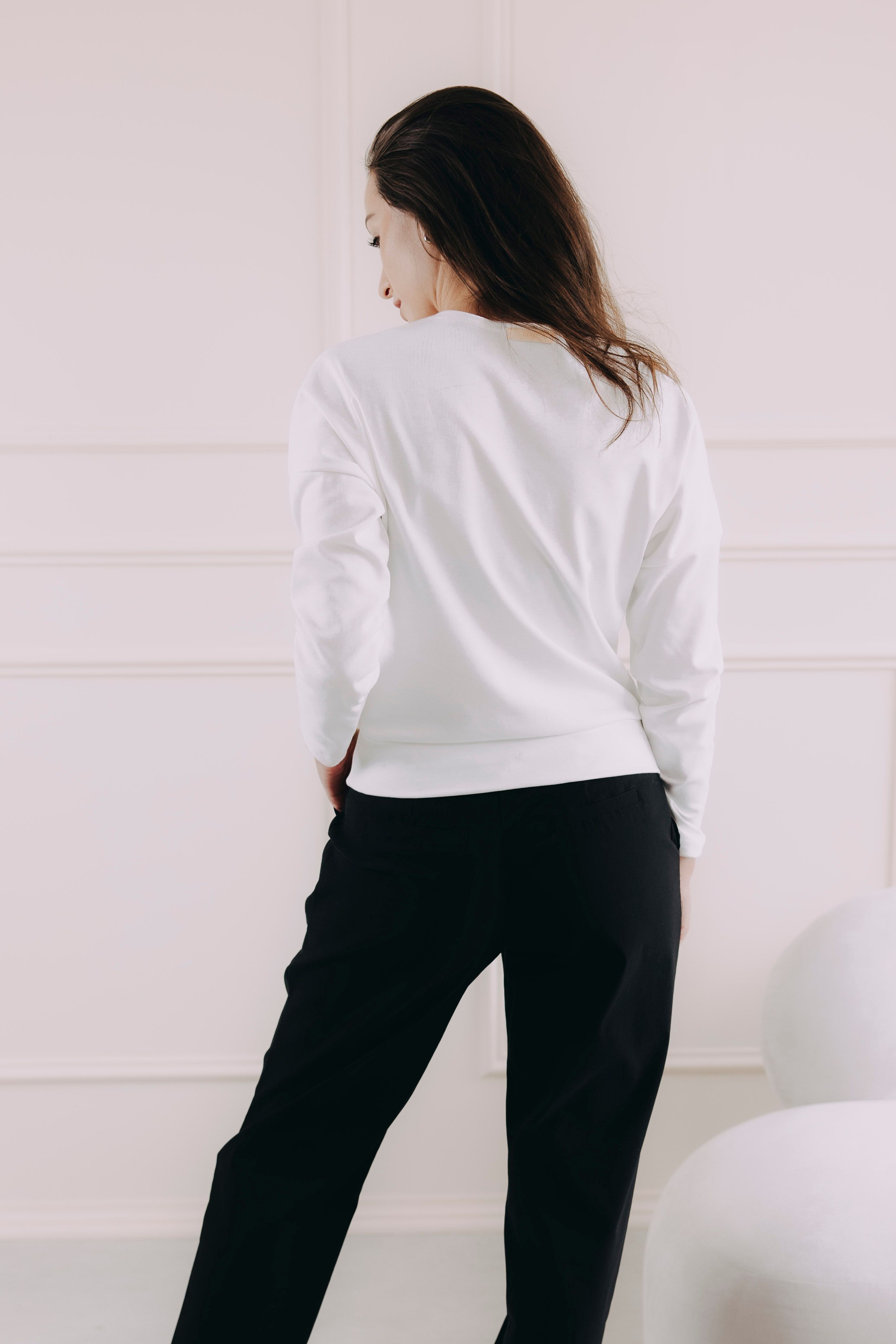 Díky volnějšímu překřížení na přední straně doporučujeme volit menší velikost, než si běžně kupujete. Tričko vám díky tomu lépe přilne k tělu a perfektně sedne.