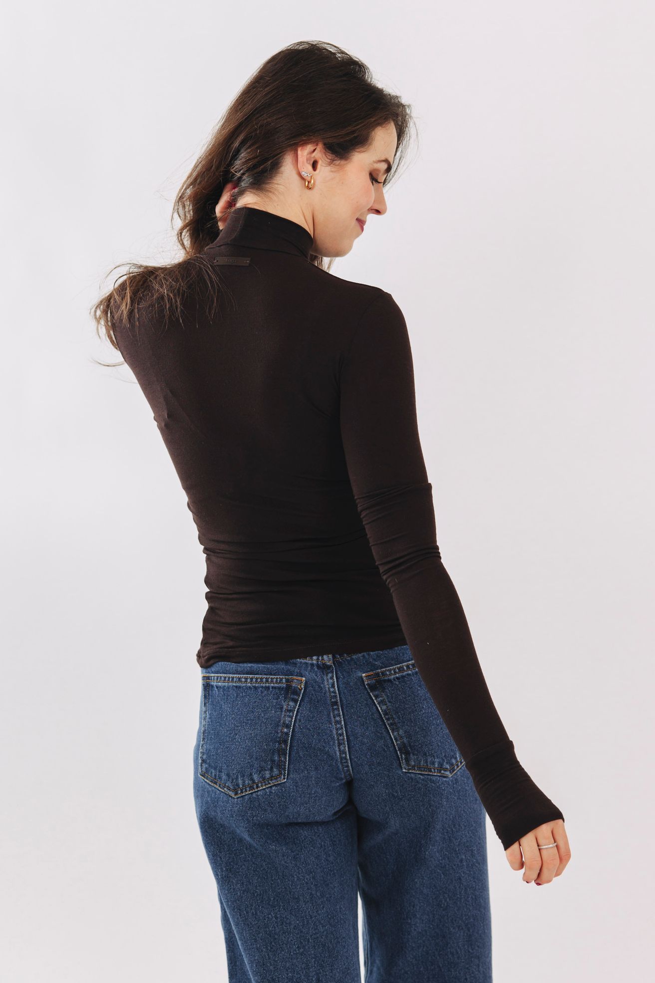 Jemný jako pohlazení a lehký jako vánek. Rolák Binta v odstínu Brown je naše definice „wearing me softly“ aneb kousek, který vás něžně oblékne do absolutní pohody. Zapomeňte na tuhá a nepoddajná trička. Díky unikátní směsi tencelu a vlny je neuvěřitelně prodyšný a pružný, takže se vám přizpůsobí jako druhá kůže. Je to ten typ základu, který do vašeho minimalistického šatníku vnese pocit luxusu při každém doteku.