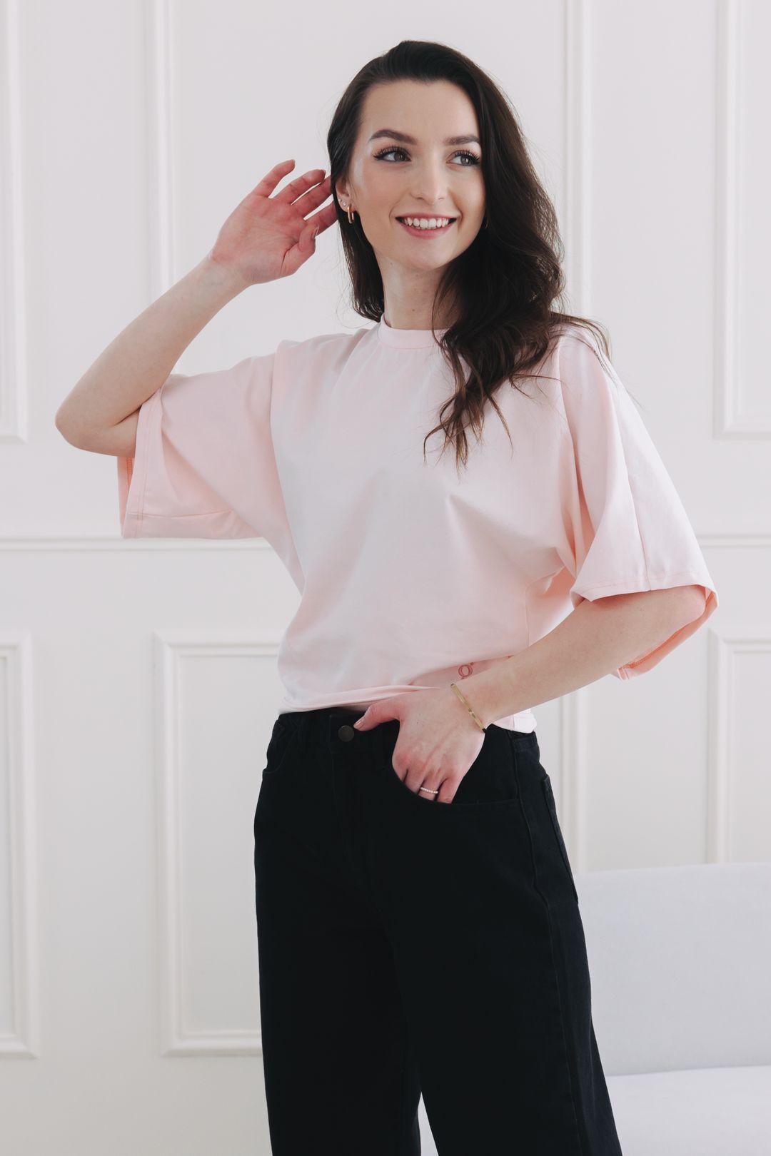 Hledáte to dokonalé růžové tričko, co nemá být jen neviditelnou vrstvou, ale kouskem, který vytvoří celý outfit? Seznamte se s Chiomou. Má přesně ty netopýří rukávy, které vám dají svobodu v pohybu, schovají, co mají, a přitom vytvoří postavu, za kterou se každý otočí. Je to tričko, co vypadá stejně dobře k teplákům na doma jako k elegantní sukni na večírek. Prostě jiný level minimalismu.