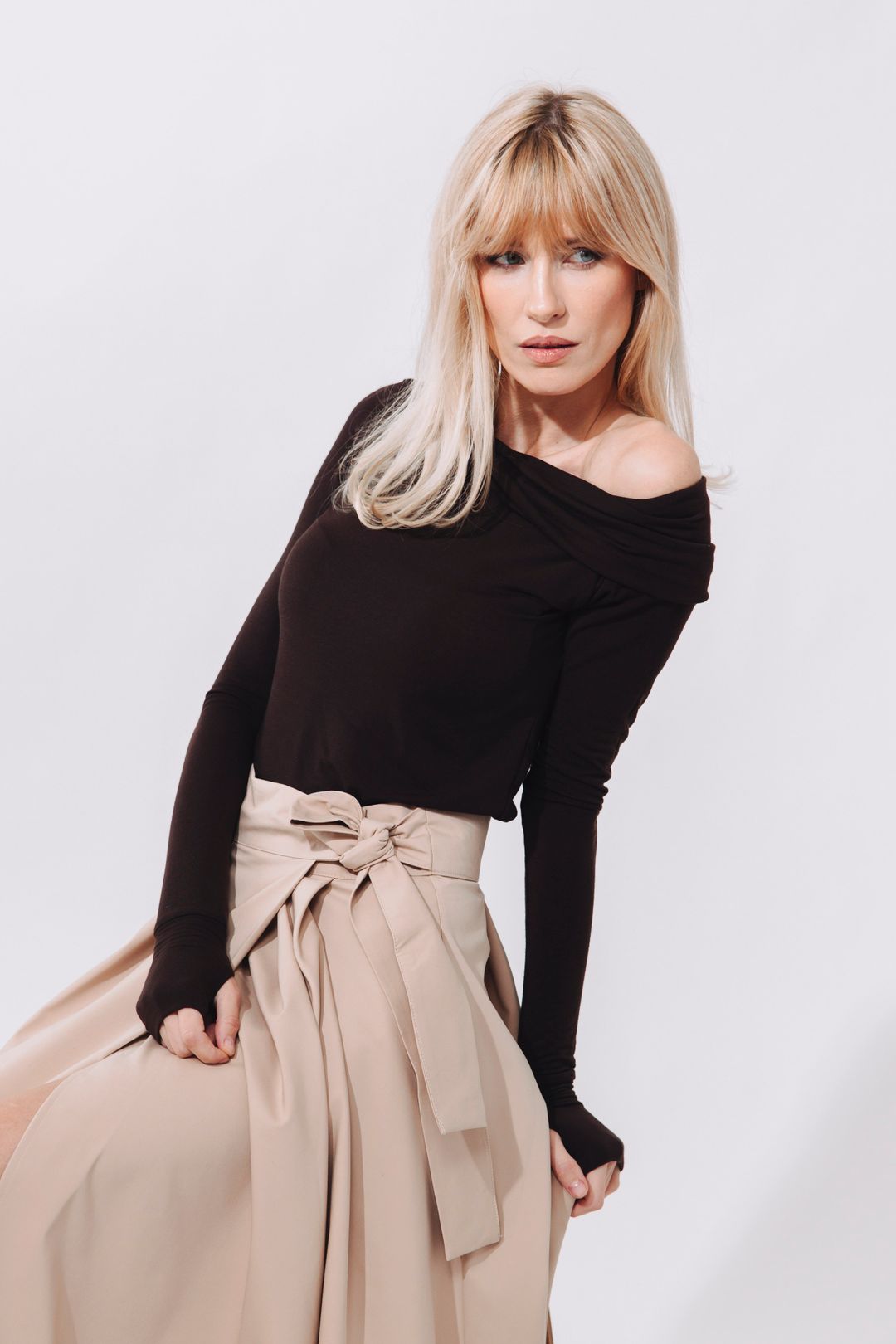- Jedinečnost v každém detailu: Tričko Dalila v sobě kombinuje dva světy, a to maximální svůdnost odhalených ramen a hřejivou jemnost vlny s tencelem. Na rozdíl od běžných triček se Dalila nemačká, drží tvar a na kůži působí jako druhá kůže. Je to kousek, který definuje moderní ženskost v duchu „quiet luxury“.