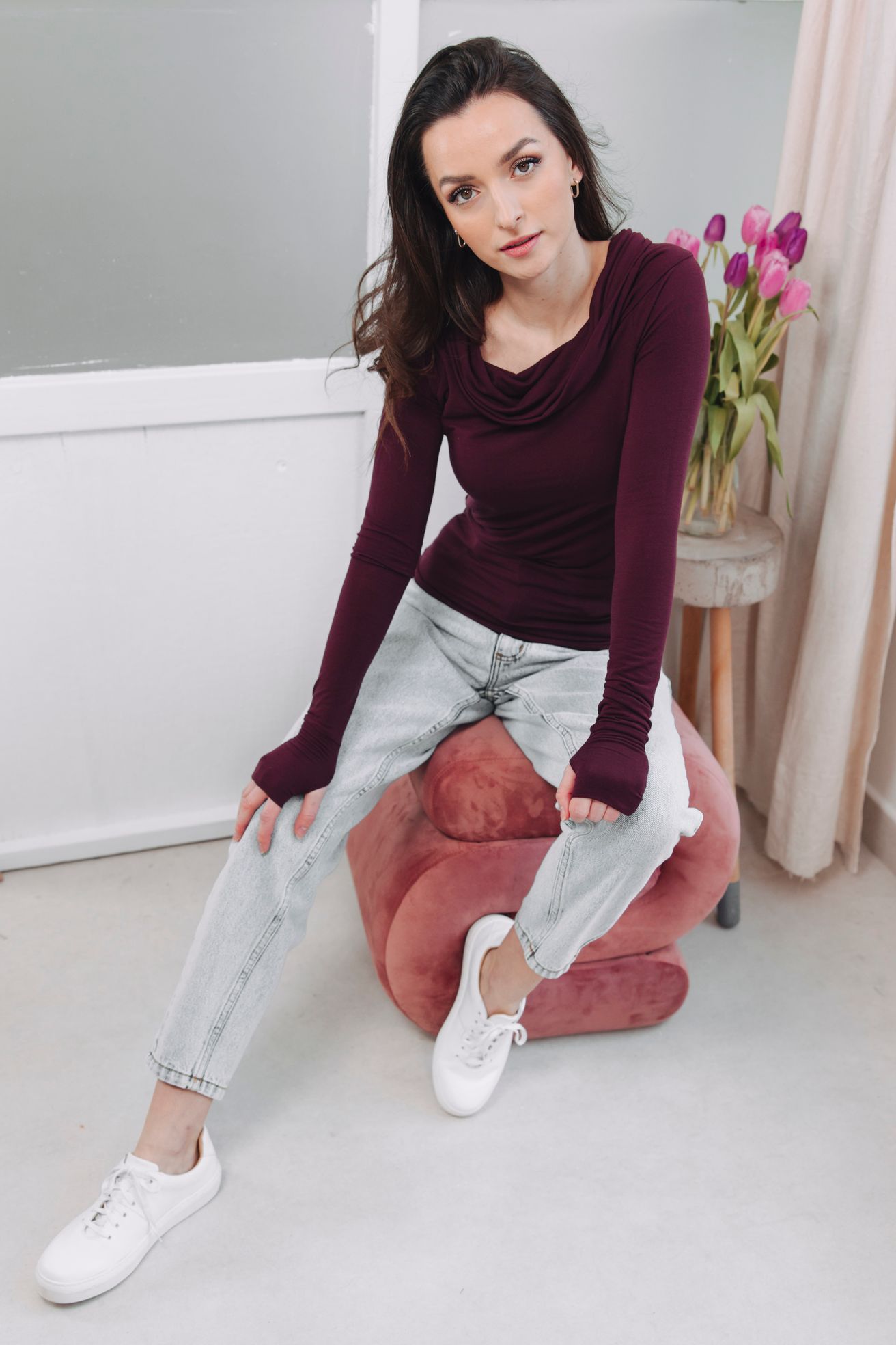 - Barva: Vínová, která působí luxusně, je trendy a skvěle se kombinuje.