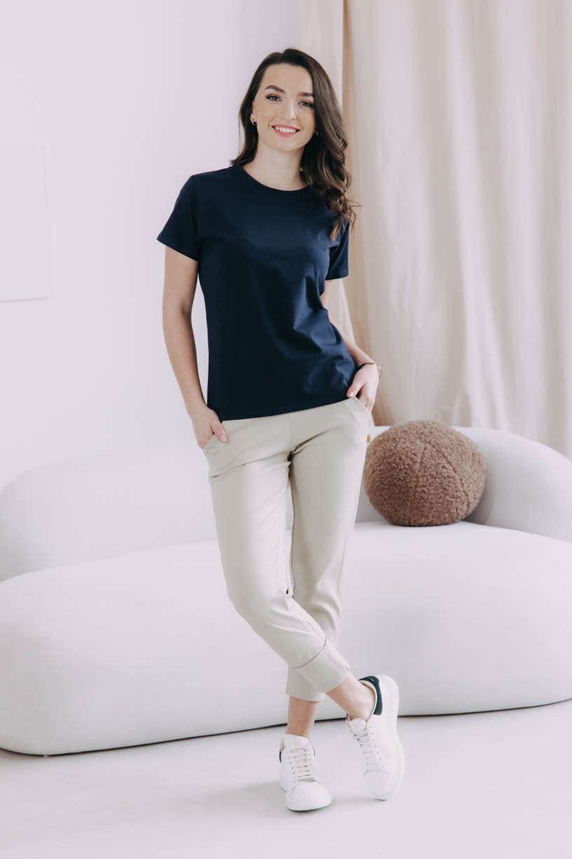 Vybrali jsme pro něj bavlnu s elastanem nejlepší kvality. Bavlněný úplet s příměsí elastanu je dokonale pružný, tvarově stálý, komfortní na nošení a jednoduchý na údržbu. Střih je lehce projmutý, volnější. V průkrčníku je lem z vrchového materiálu a vnitřní část průkrčníku je začištěna páskou z vrchového materiálu.