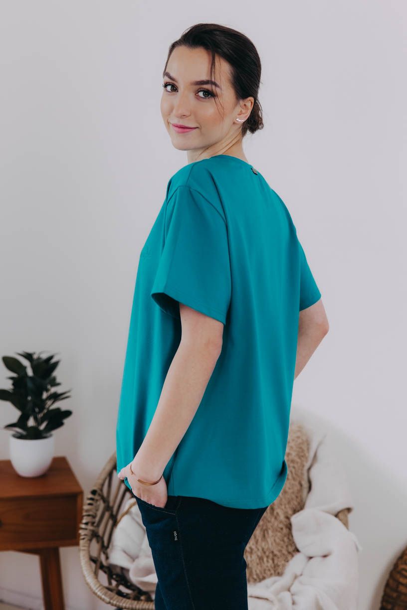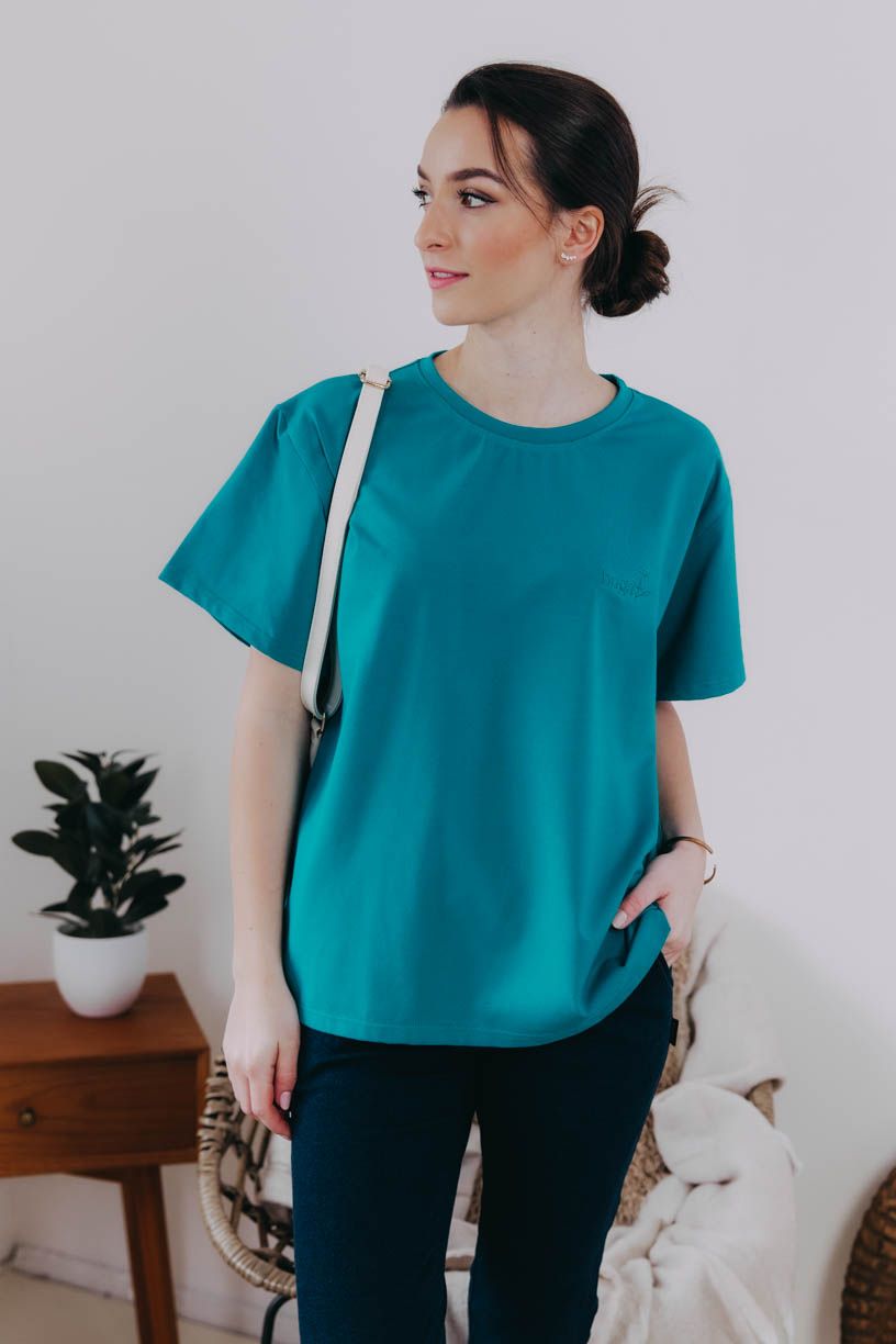 Pro milovnice nejen udržitelné módy, ale i oversized střihů poslouží coby zmíněný základ Gimbya. Klasický kulatý výstřih elegantně doplňují krátké rukávy a výšivka. Vzít se dá opravdu ke všemu – skvěle vypadá s jakoukoliv sukní i kostýmkovými kalhotami, ležérní outfit doplní s odrbanými džínami, pohodu v létě vykouzlí s kraťasy, ale proč si ho vlastně neobléknout klidně i k teplákům nebo legínám.