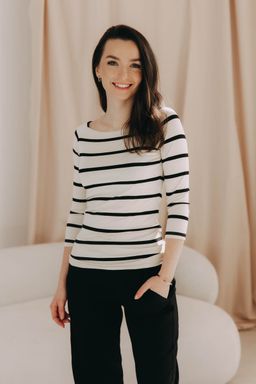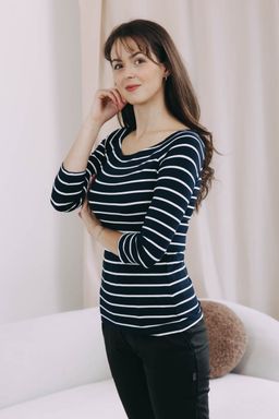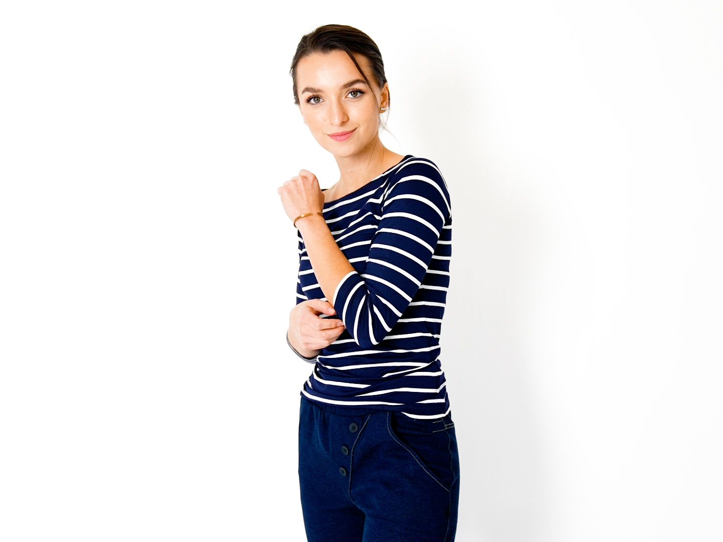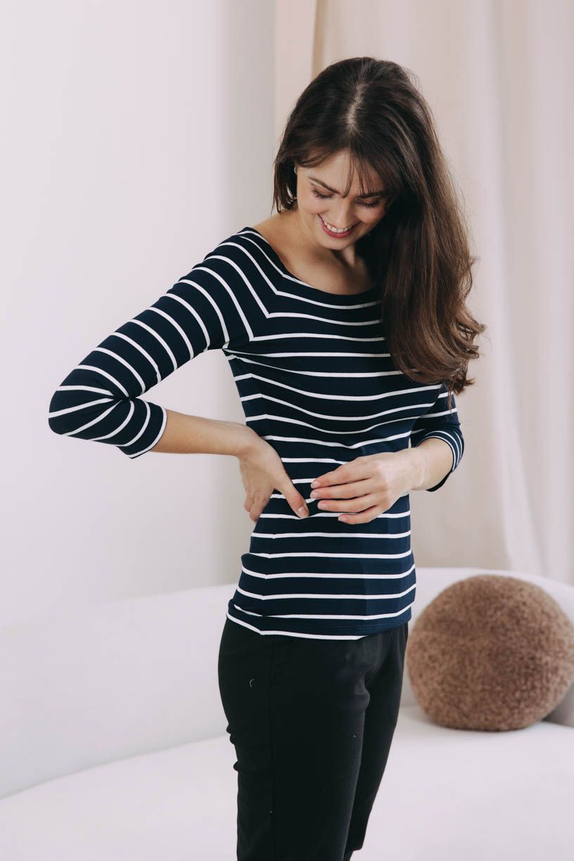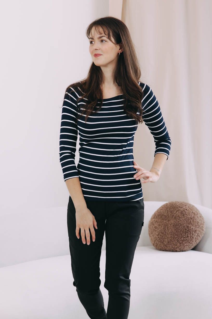 Jednoduché a minimalistické tričko Gogo s tříčtvrtečním rukávem a proužky jako stvořené pro milovnice čistých linií. Ušité z jemné viskózy.