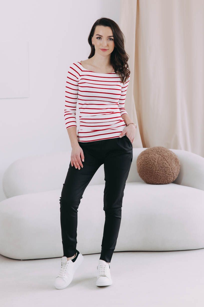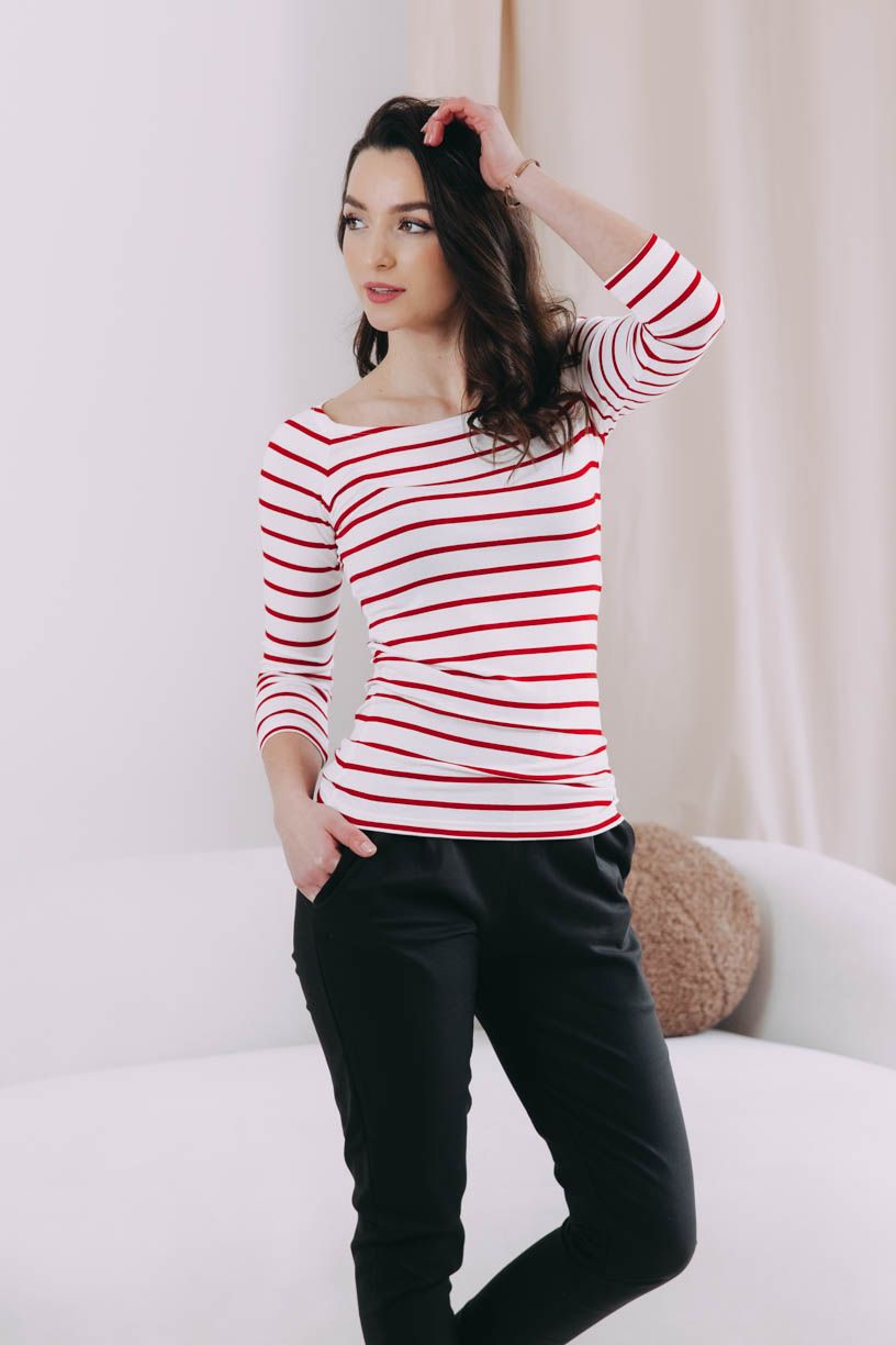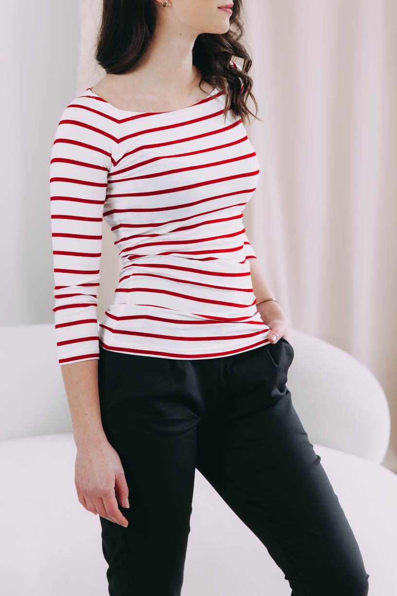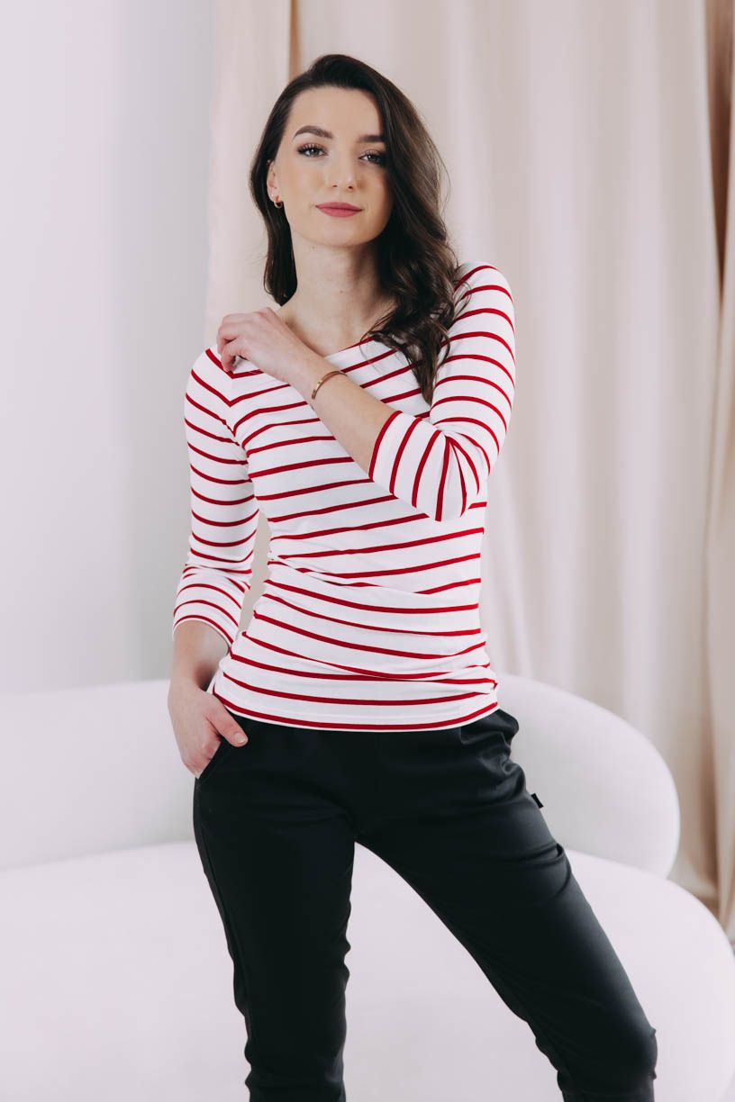 Jednoduché a minimalistické tričko Gogo s tříčtvrtečním rukávem a proužky jako stvořené pro milovnice čistých linií. Ušité z jemné viskózy.