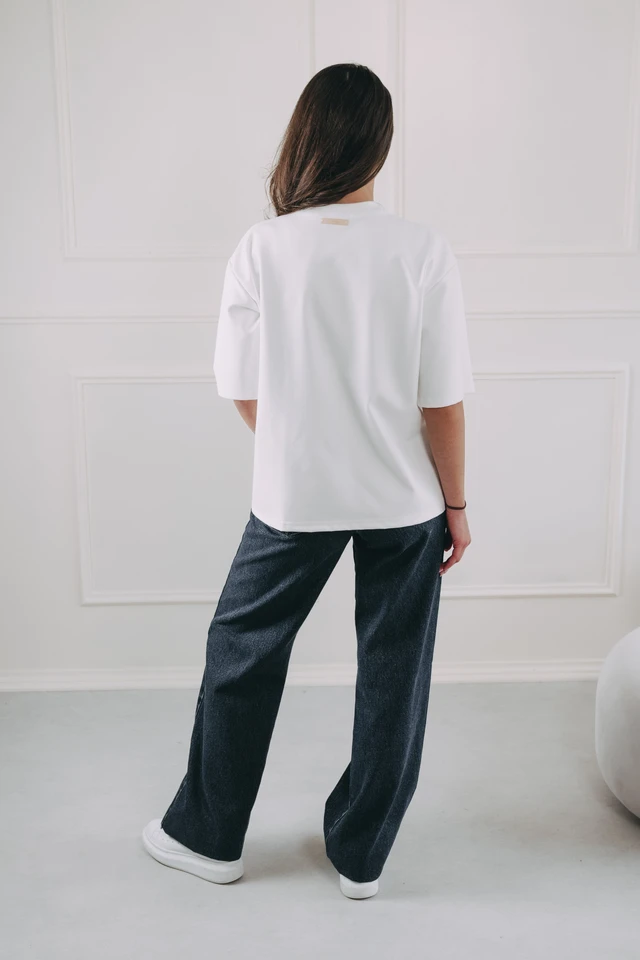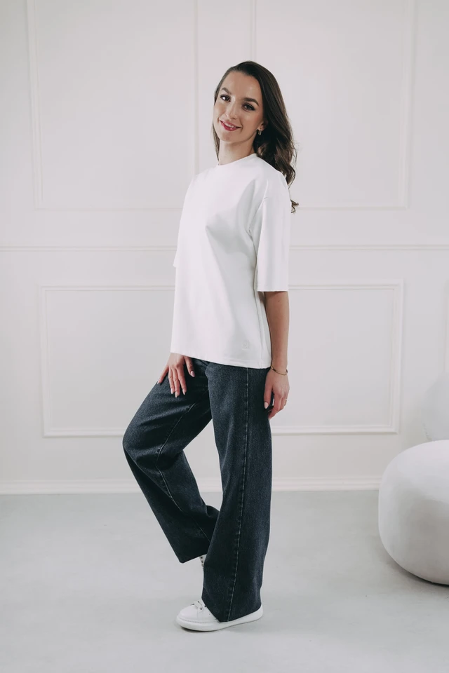 Jengo je dámské oversized tričko, které vás nebude nijak omezovat. Jeho volný střih dodá vašemu stylu ležérní eleganci, kterou oceníte při každé příležitosti. Kvalitní materiál vysoké gramáže zase perfektně drží tvar a příjemně (ale pořád „tak akorát“) hřeje. A ten snížený střih ramen? Ne, to není chyba z šicí dílny, to si prostě naše Péťa řekla, že klasické ramenní švy jsou občas fádní. Tak je posunula elegantně níž a vy máte víc prostoru a volnosti pro každodenní život. A je asi jasné, že stejně jako naše všechny další kousky, je i Jengo ušité v Česku. Kvalitně a s péčí.