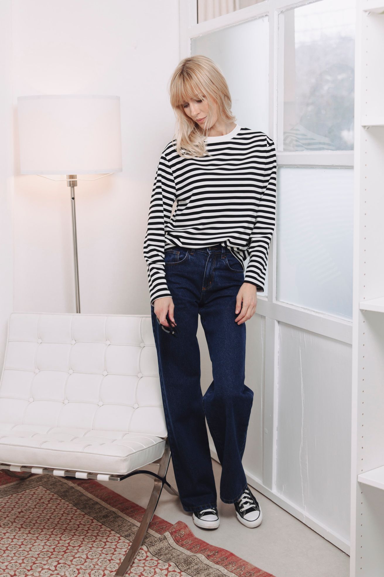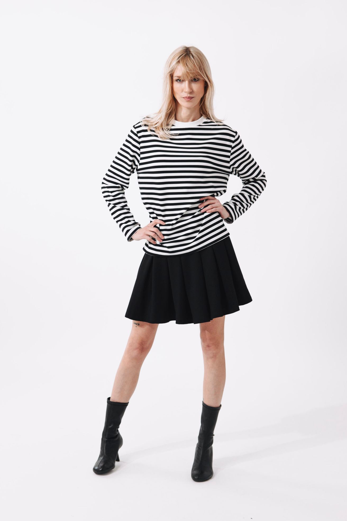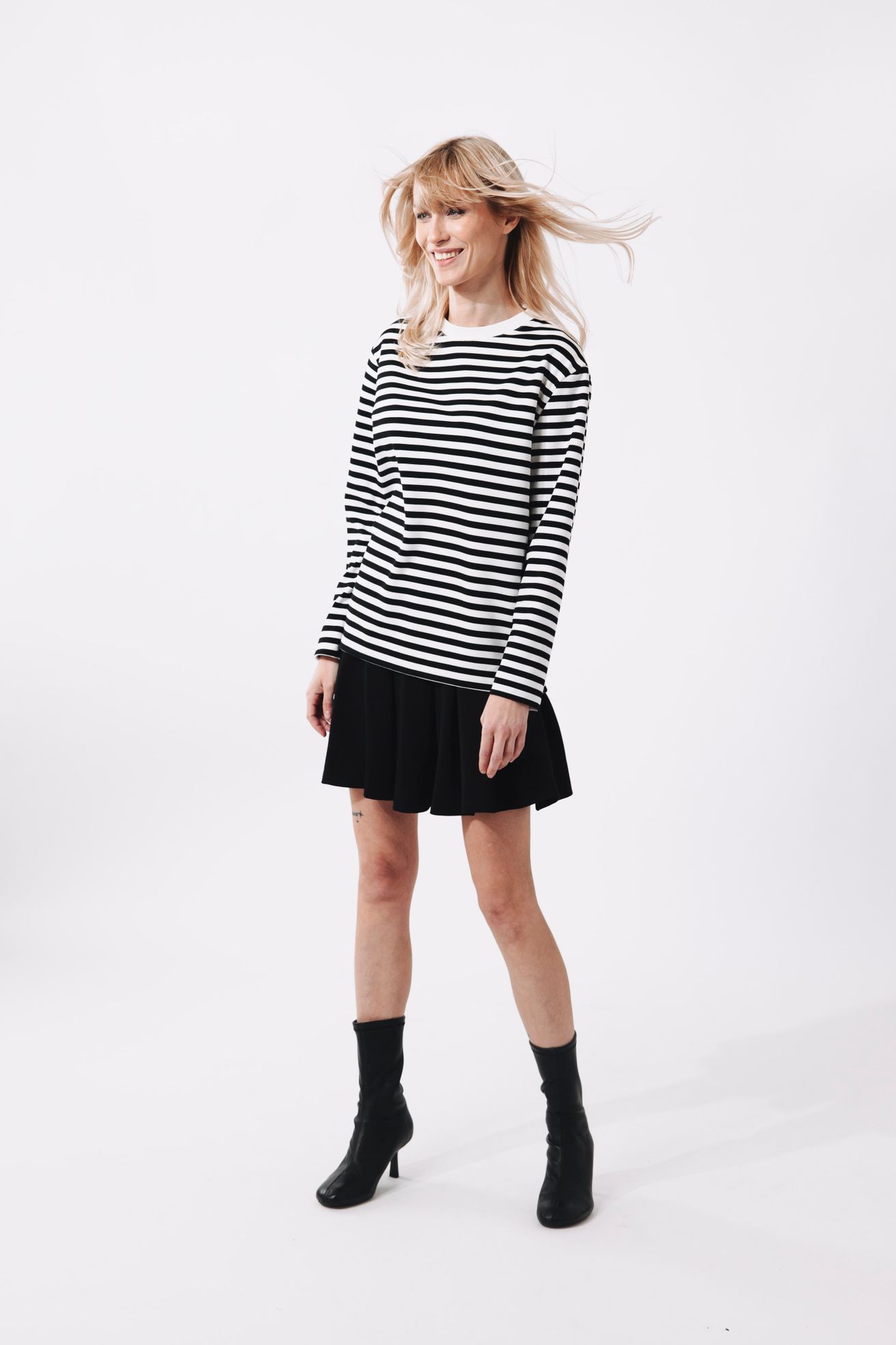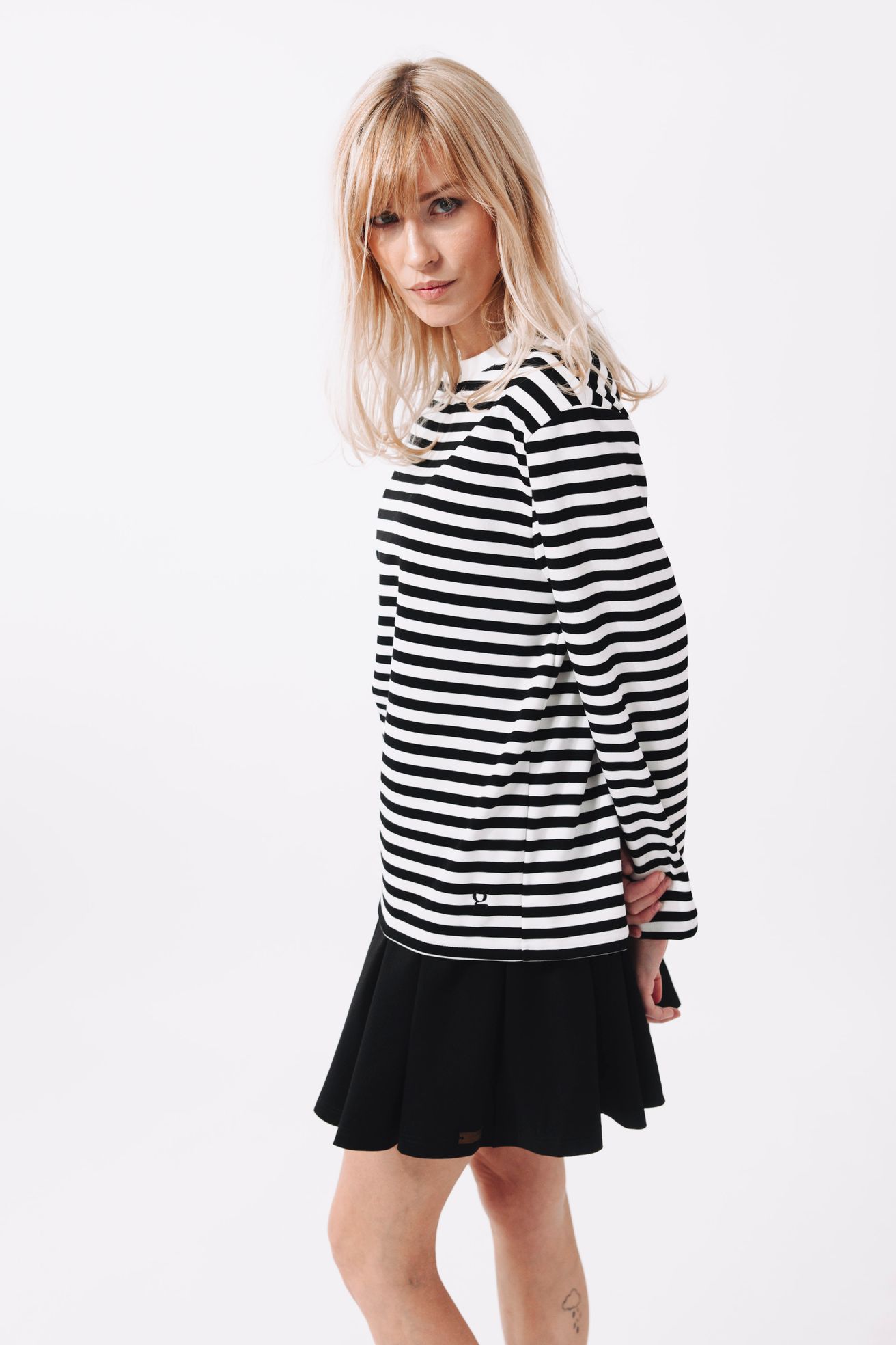 Pruhy a šatovka? To je dvojka k pohledání. Kaya vypadá naprosto božsky jako spodní vrstva pod džínovou šatovku. Pruhované rukávy, které vykukují ven, dodají celému looku hloubku a vtip. Je to ideální způsob, jak zůstat v teple, cítit se stylově a vnést do svého šatníku trochu hravosti.