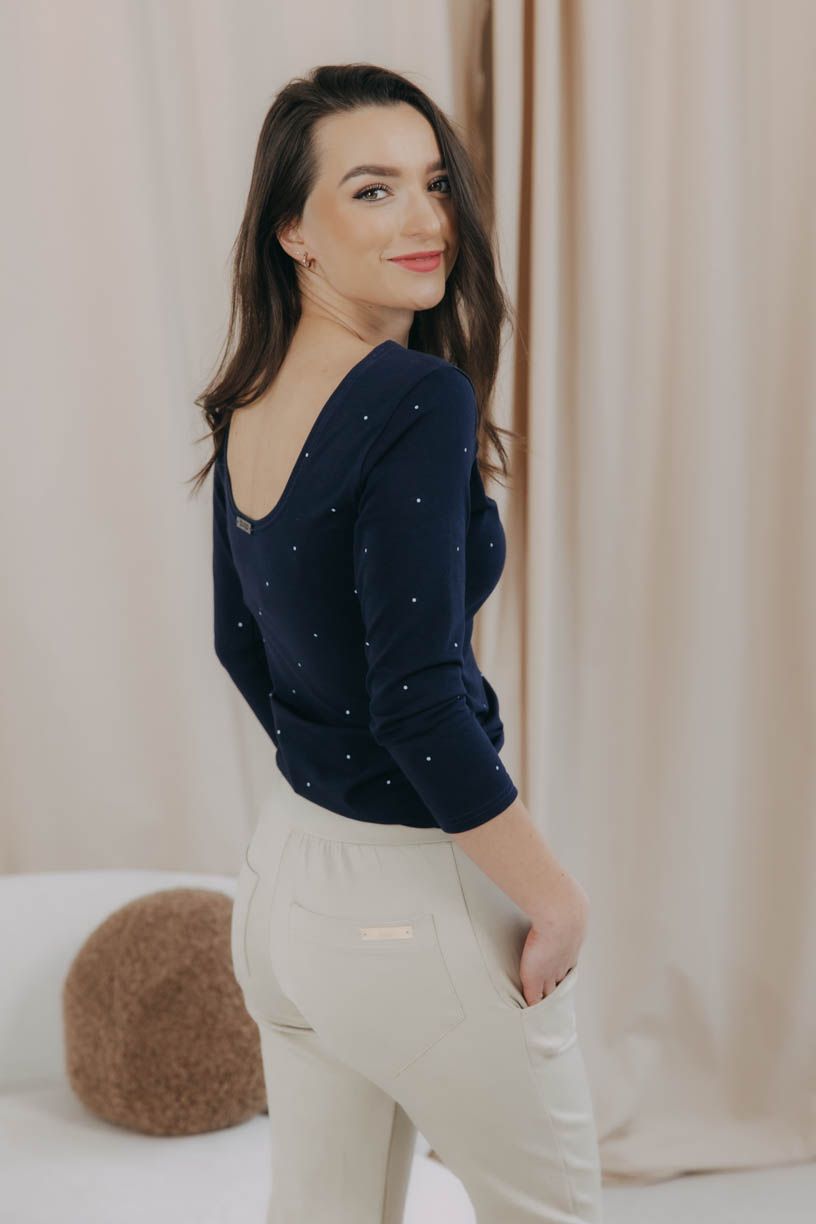 Tričko Kenda je kouskem, který zaujme na první pohled. Dokonale bude rozumět se sukní nebo kalhotami v ležérním stylu pro volný čas, ale i v duchu elegance do práce. 3/4 rukáv jsme doplnili hlubokým výstřihem na zádech.