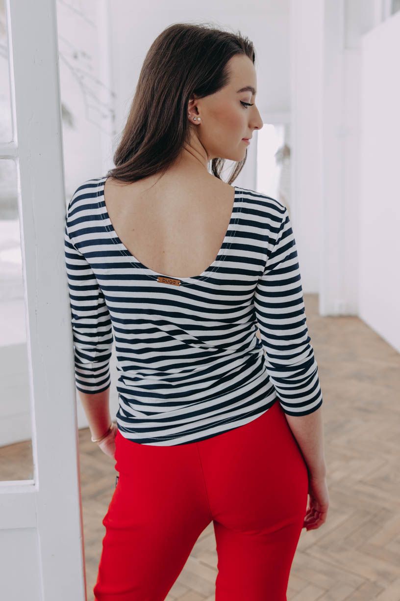 Tričko Kenda je kouskem, který zaujme na první pohled. Dokonale bude rozumět se sukní nebo kalhotami v ležérním stylu pro volný čas, ale i v duchu elegance do práce. 3/4 rukáv jsme doplnili hlubokým výstřihem na zádech.