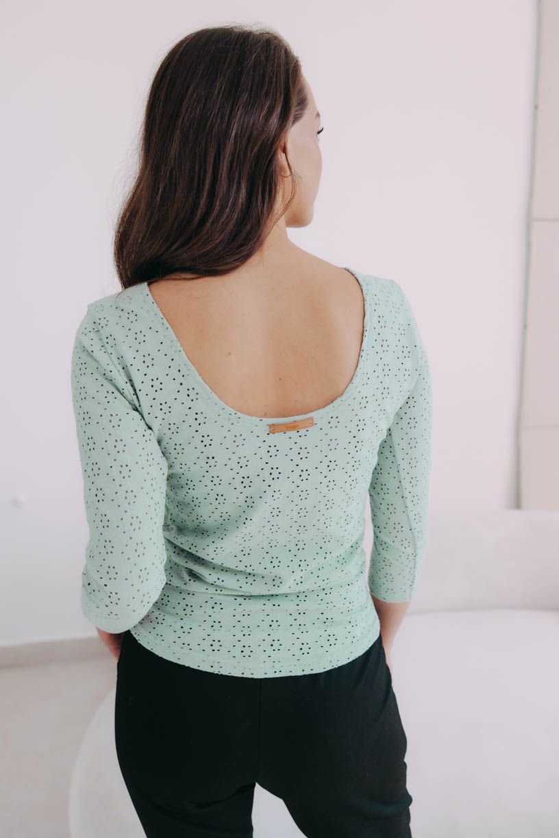 Tričko Kenda je kouskem, který zaujme na první pohled. Dokonale bude rozumět se sukní nebo kalhotami v ležérním stylu pro volný čas, ale i v duchu elegance do práce. ¾ rukáv jsme doplnili hlubokým výstřihem na zádech.