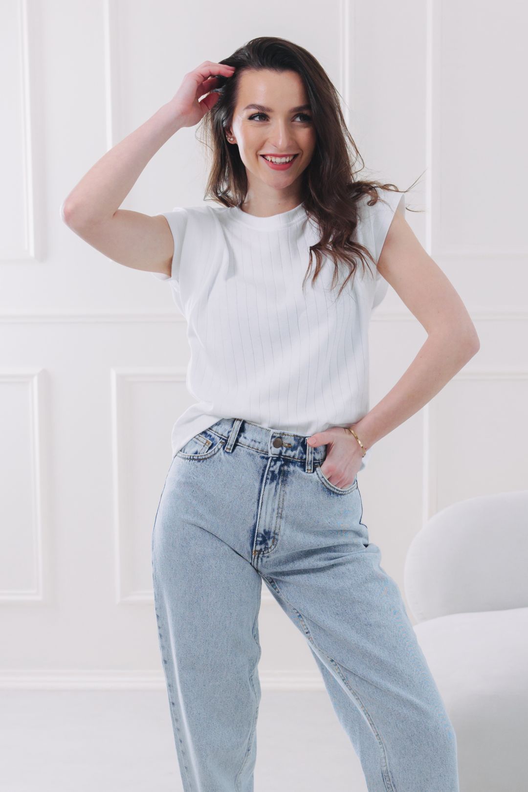 Víme, co si myslíte. Další tričko do sbírky? Jenže Kimani není jen další položka v košíku. Je to ten kousek, který si obléknete, když chcete vypadat, že jste nad outfitem přemýšlela hodiny, i když jste ho na sebe hodila za tři vteřiny. Spojuje v sobě nesmrtelný proužkovaný vzor s originálním řešením rukávů, které dodá vašemu outfitu okamžitý šmrnc. Je to tričko, které v sobě nese lehkost léta, eleganci do práce a pohodlí, kterému nebudete chtít věřit.
