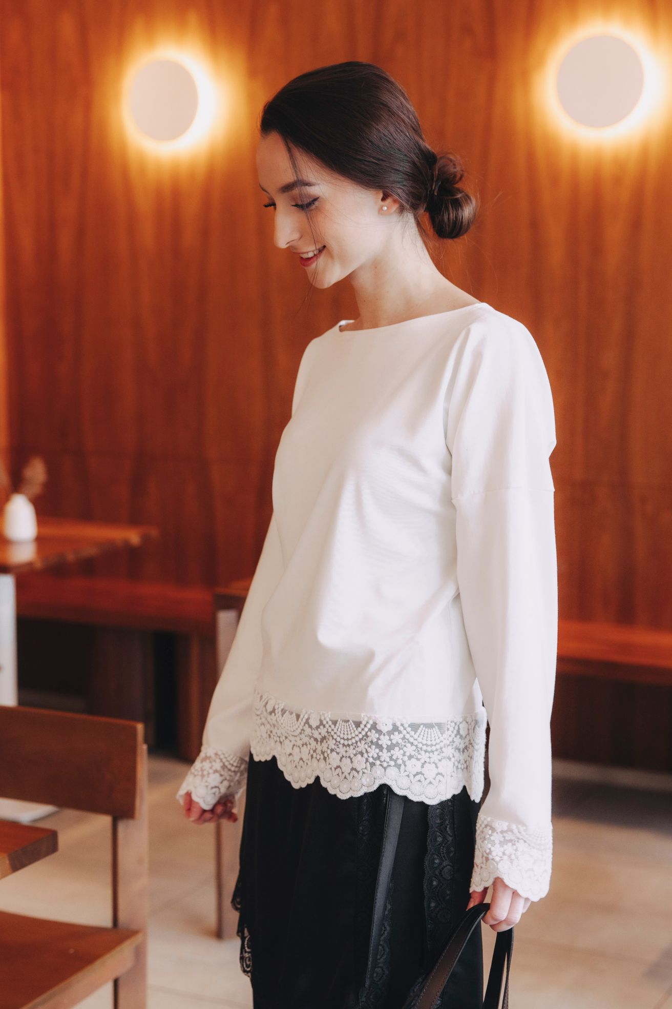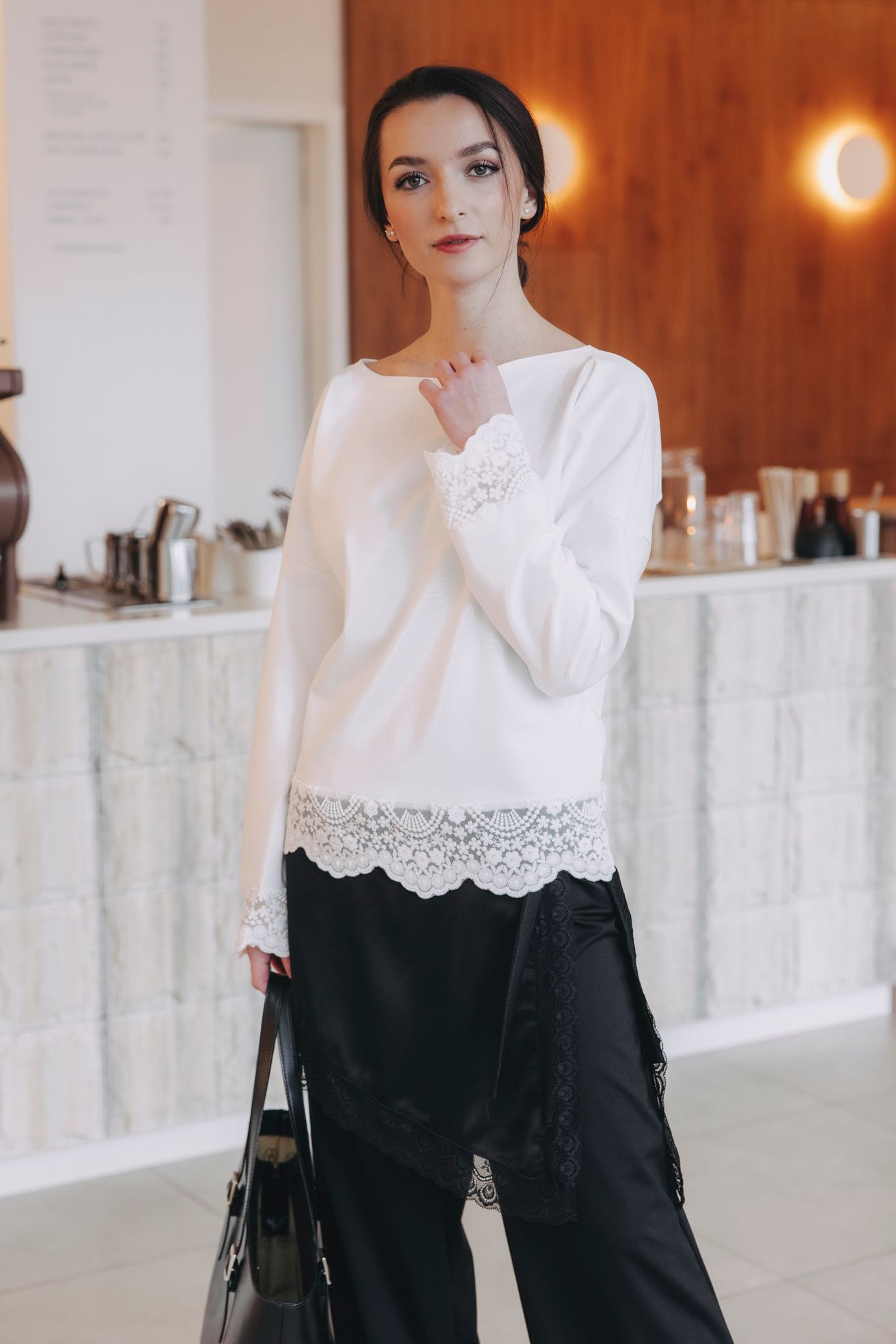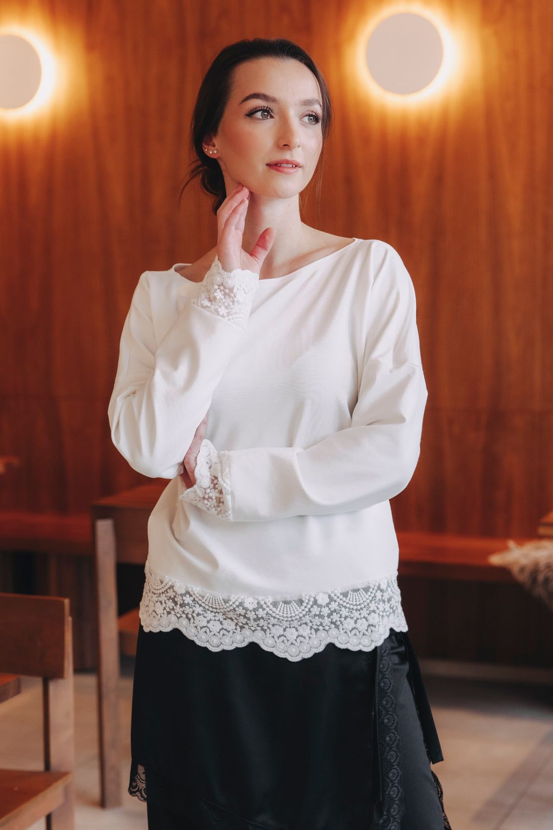 Vzali jsme Váš oblíbený, osvědčený materiál a povýšili ho na novou úroveň. Zdánlivě obyčejné tričko s dlouhým rukávem jsme oživili nádhernou krajkou na rukávech a spodním lemu. Výsledek? Dokonalá harmonie.