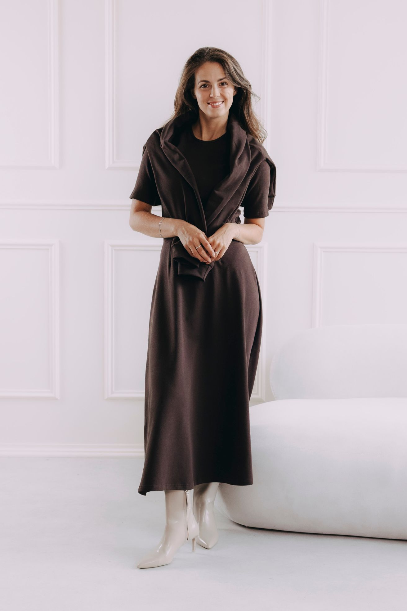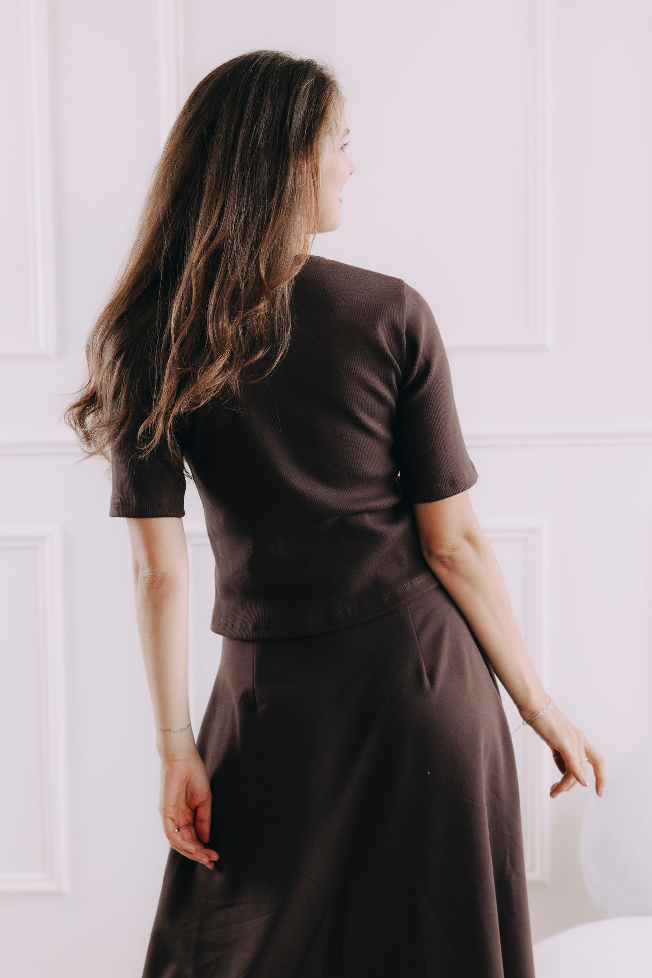 Tričko Malik má ideální délku k bokům, která se přizpůsobí vašemu stylu. Můžete ho nosit volně přes kalhoty nebo sukni, nebo ho snadno zastrčit do kousků s vysokým pasem pro elegantnější look. Díky promyšlenému střihu se nevyhrnuje a drží na svém místě, ať už ho nosíte jakkoli.