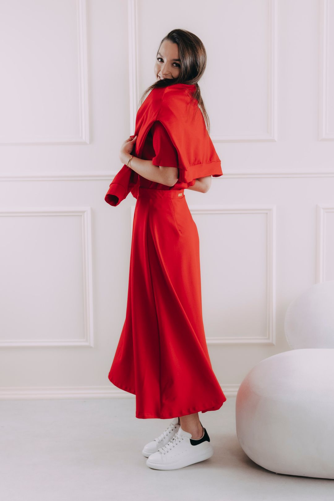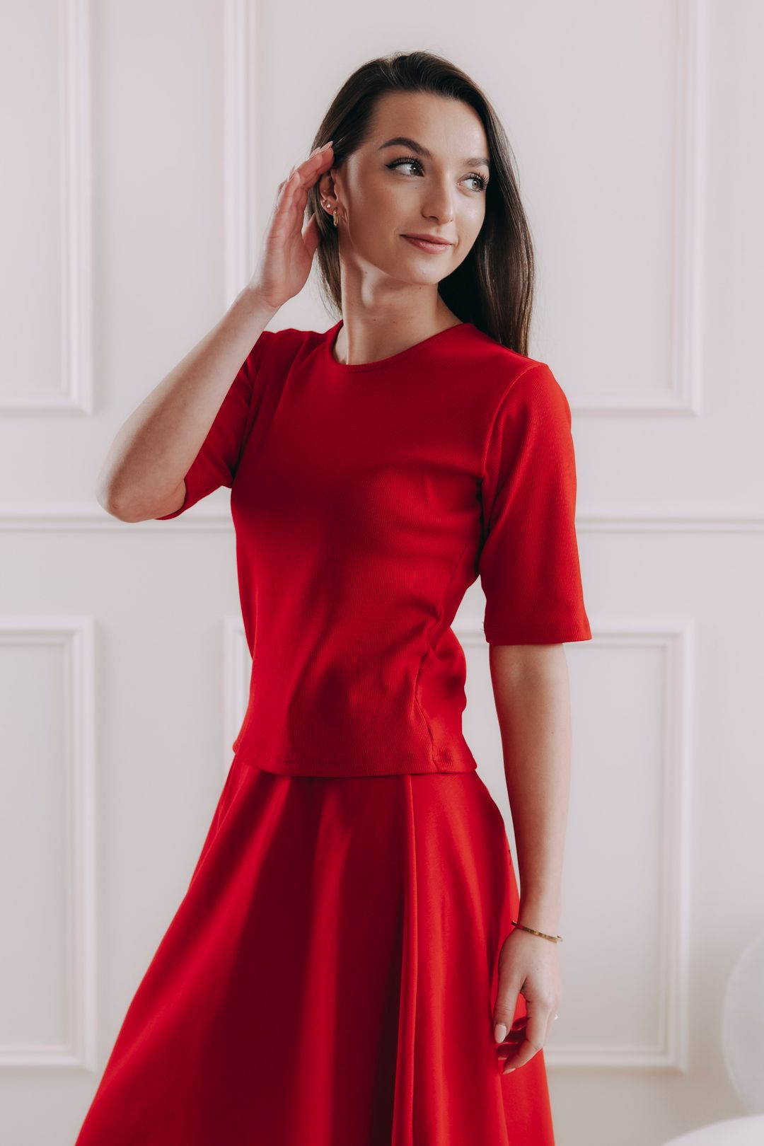 Tričko Malik má ideální délku k bokům, která se přizpůsobí vašemu stylu. Můžete ho nosit volně přes kalhoty nebo sukni, nebo ho snadno zastrčit do kousků s vysokým pasem pro elegantnější look. Díky promyšlenému střihu se nevyhrnuje a drží na svém místě, ať už ho nosíte jakkoli.
