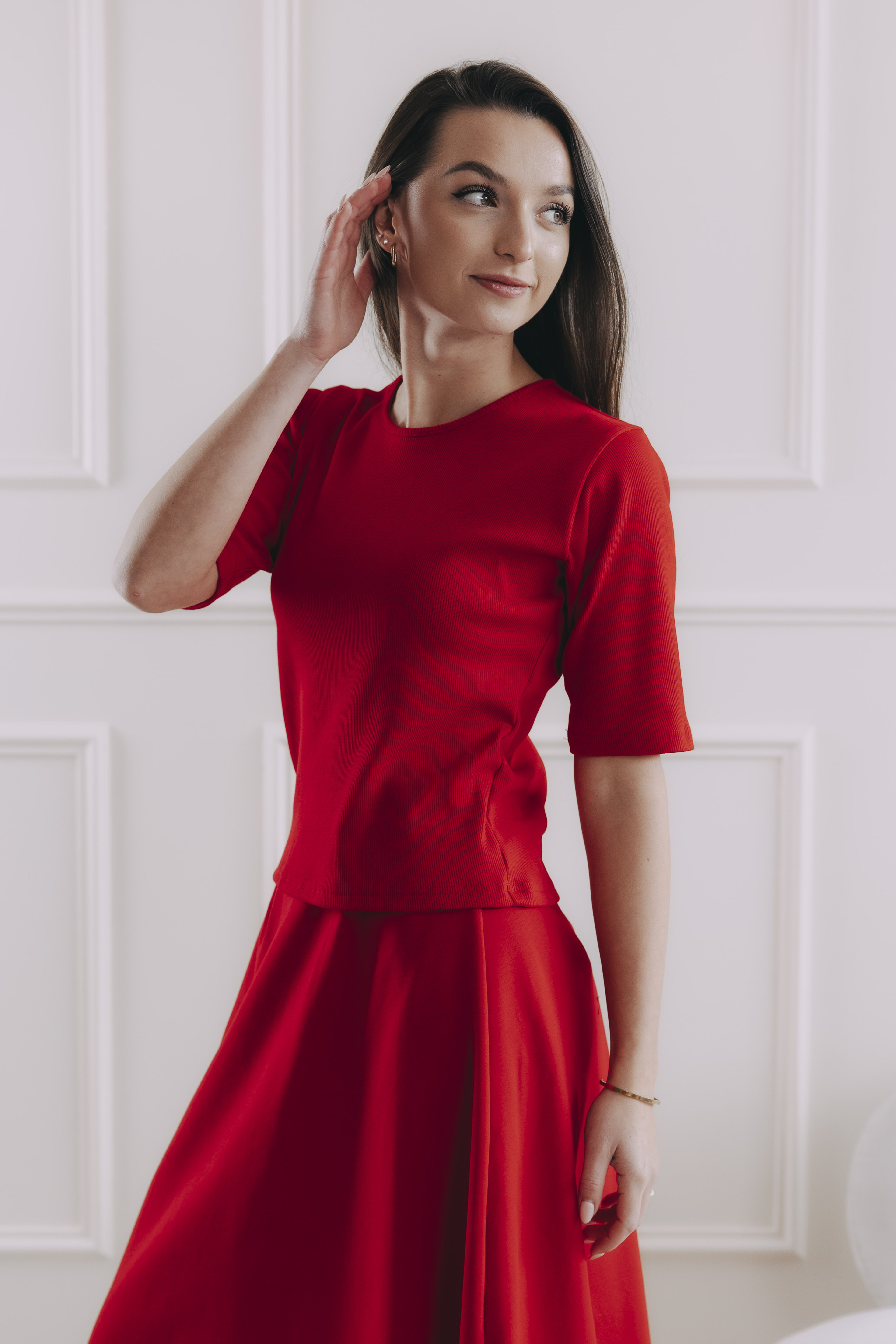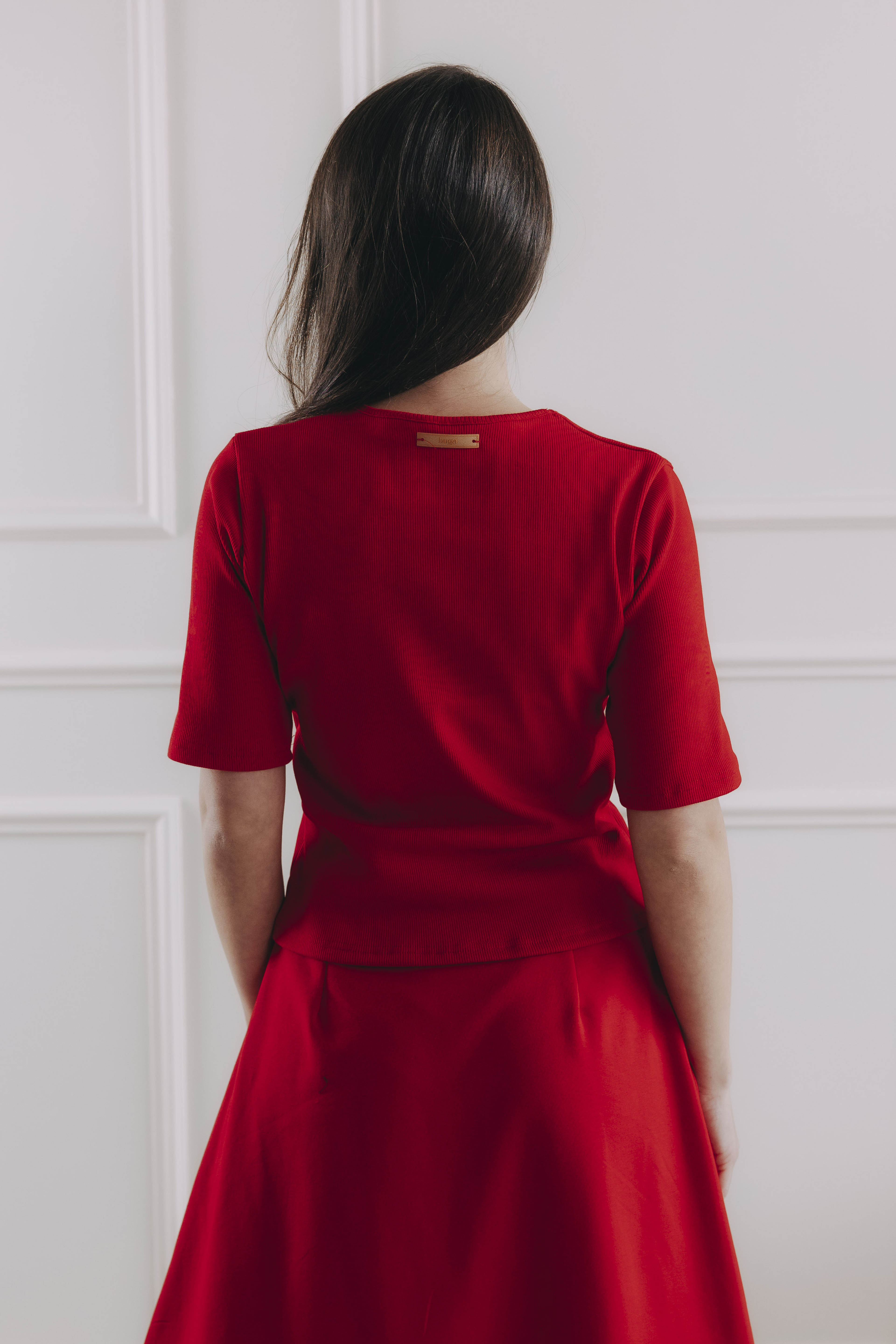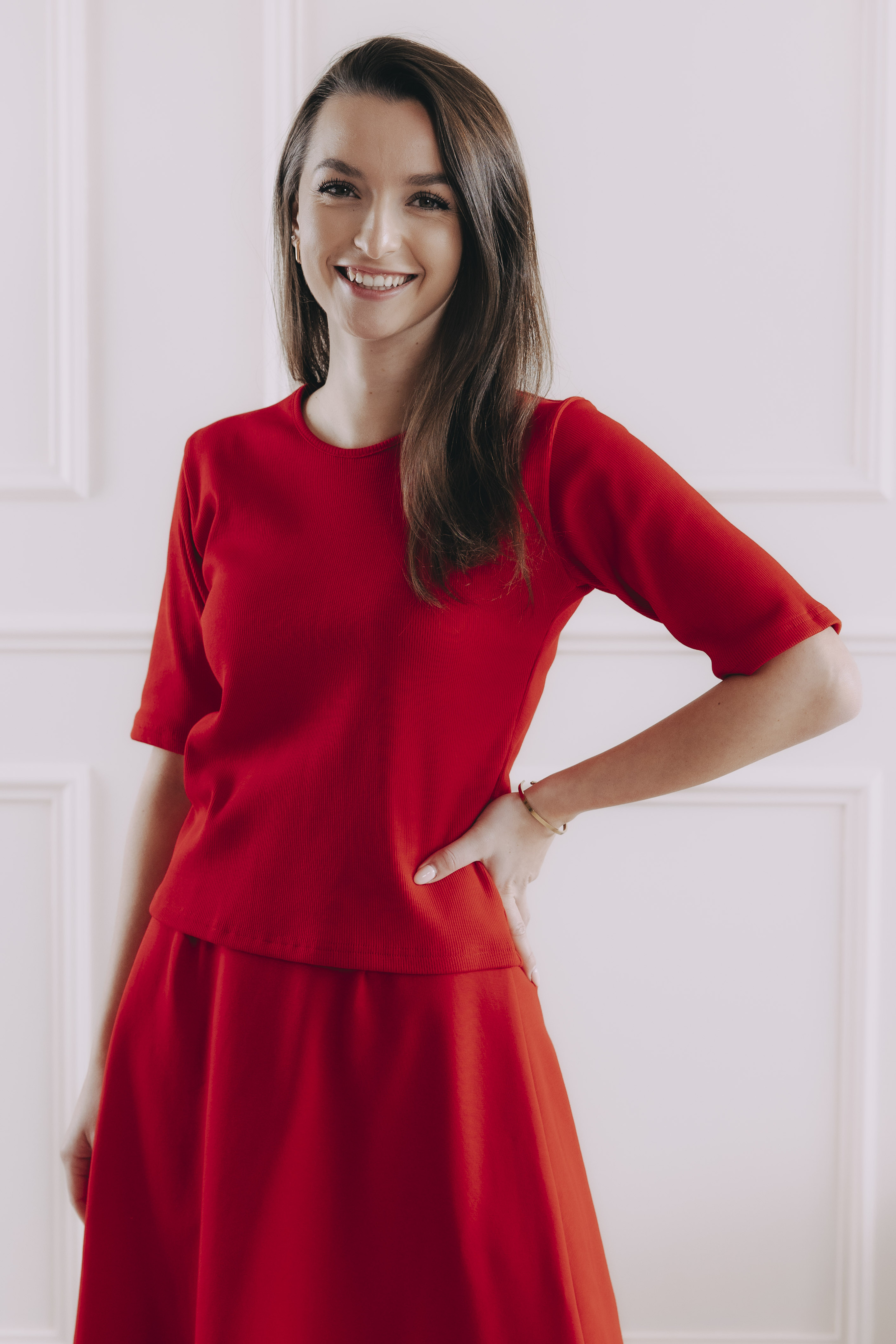 Tričko Malik je navíc jako stvořené do kompletu Mosi - se sukní a mikinou. Vytvoříte si tak pohodlný komplet do práce i na cestování.
