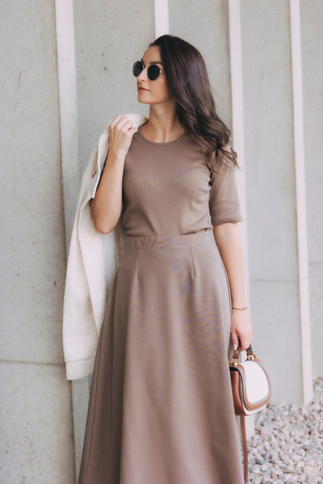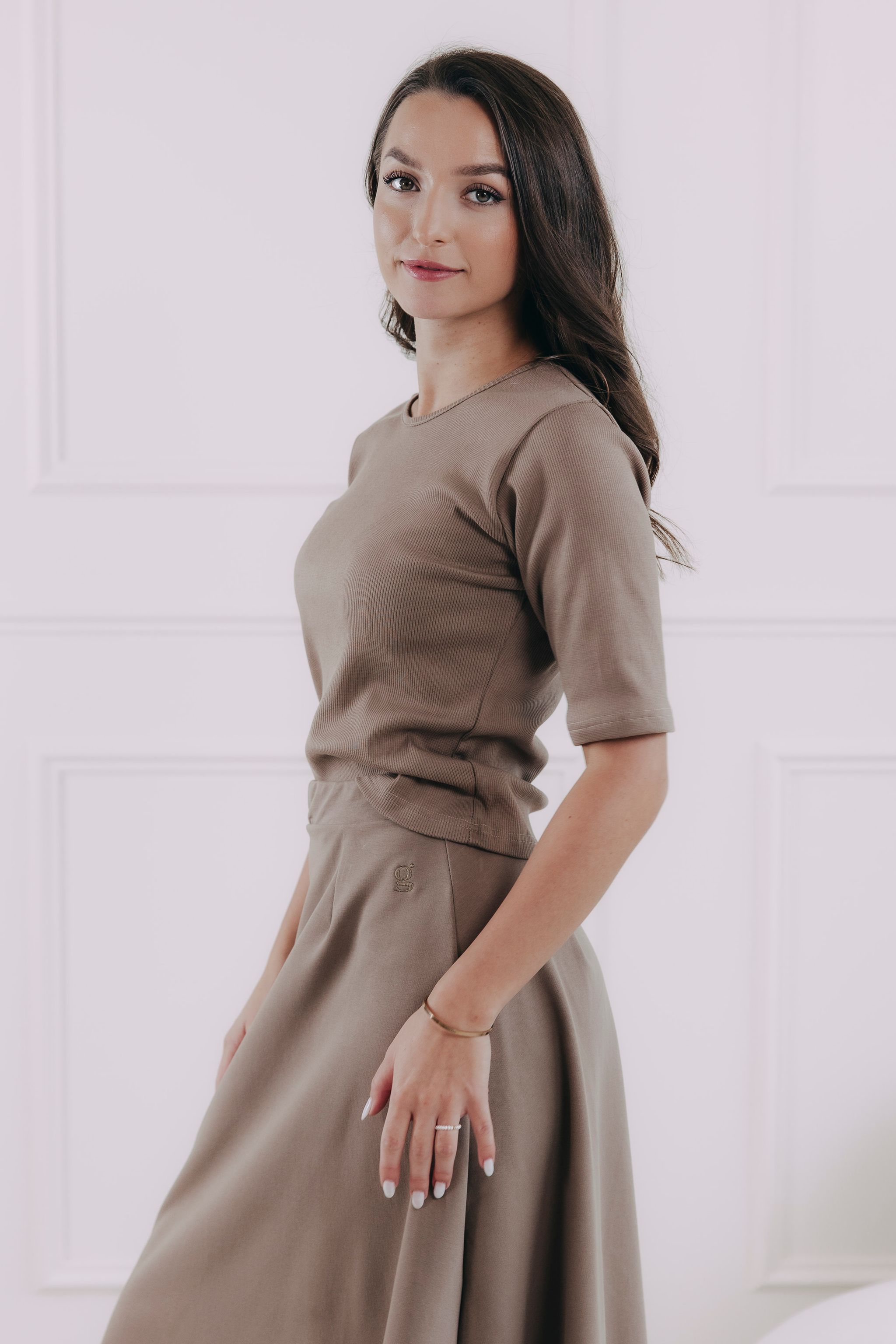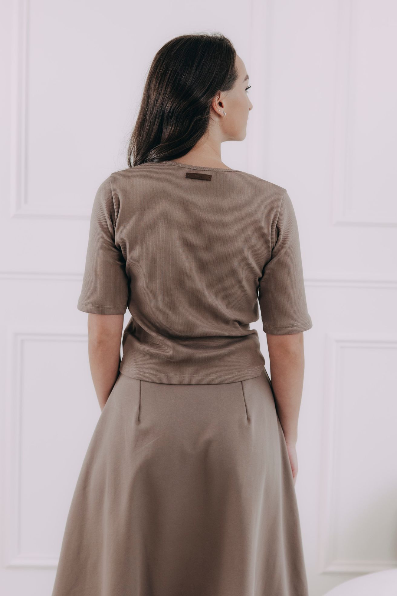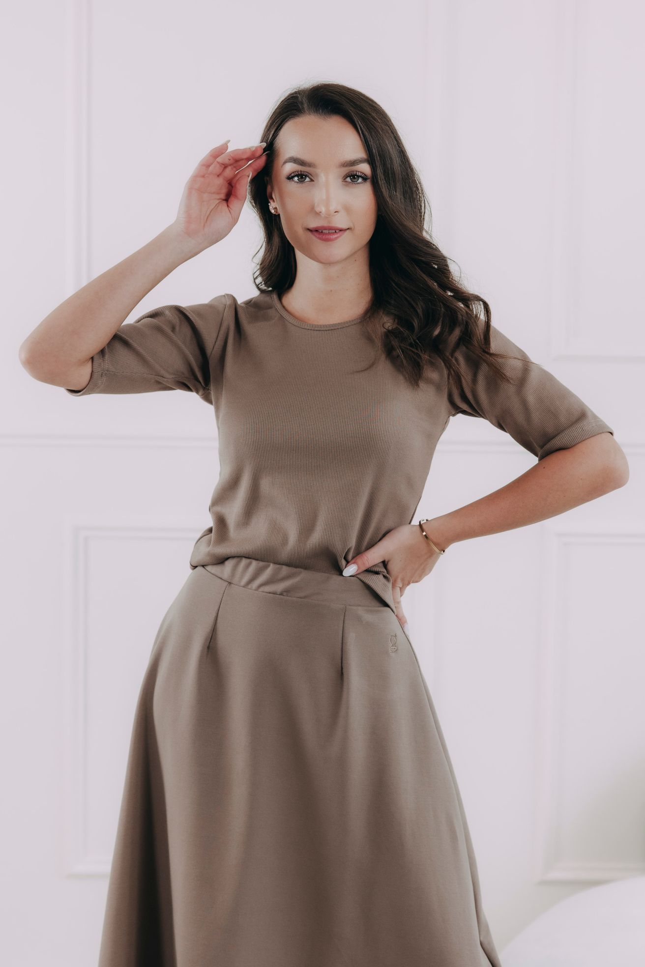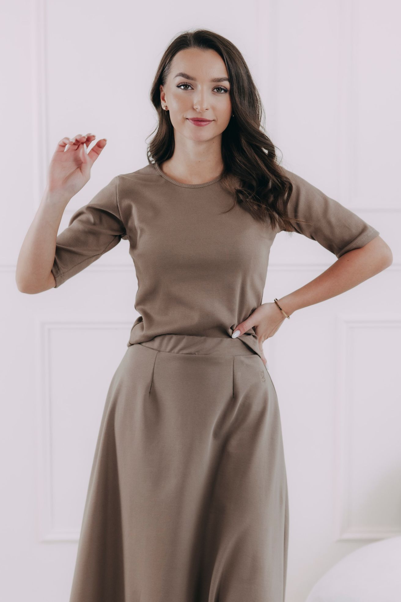 Tričko Malik je navíc jako stvořené do kompletu Mosi se sukní a mikinou. Vytvoříte si tak pohodlný komplet do práce i na cestování.