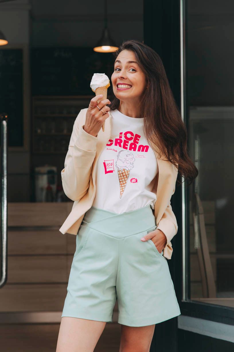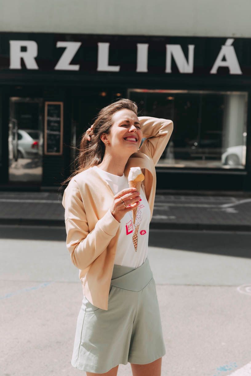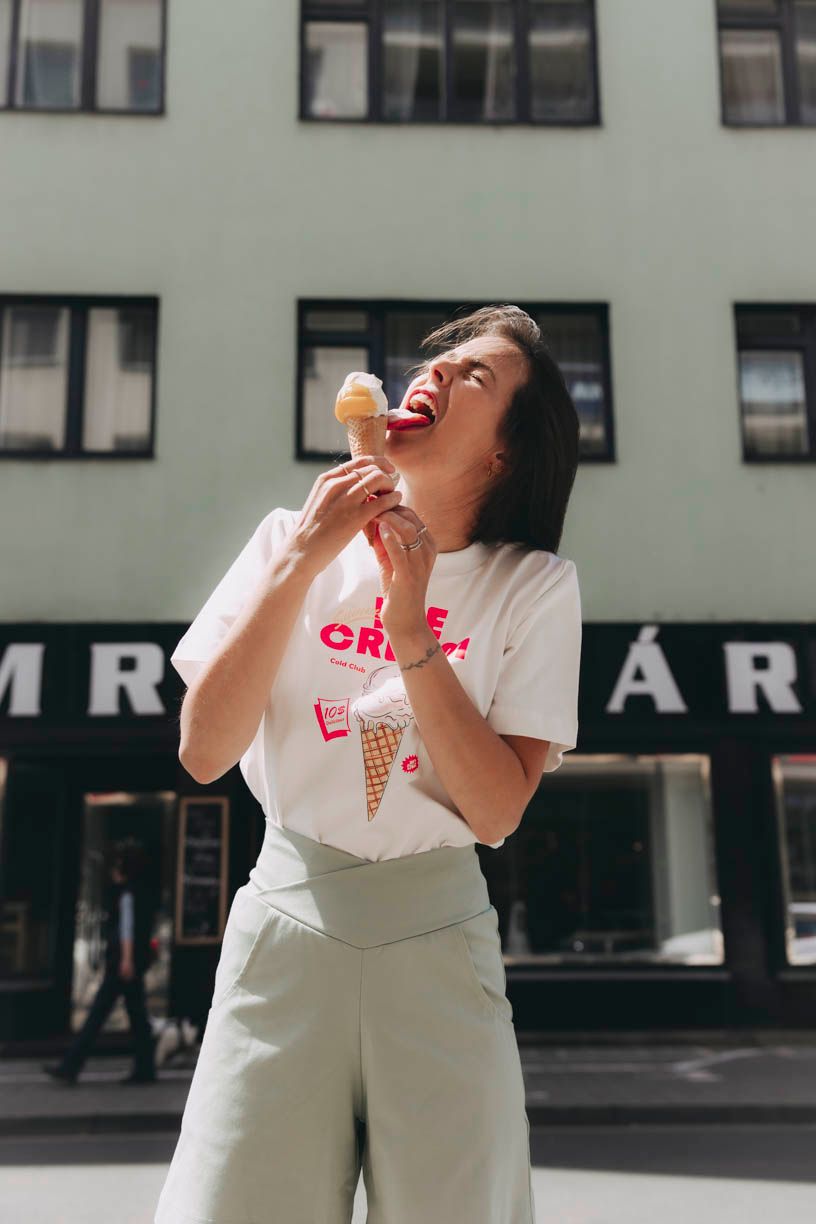 Slunce sice nesvítí každý den, ale nálada může. Ice Cream je nálada lehkosti, sladkosti a hravosti – taková, co roztaje líně a pomalu a zanechává jasnou a nesmazatelnou (tedy nevypratelnou) stopu. I obyčejné pondělí může chutnat jako… třeba jahodová. Stačí se podle toho obléknout.