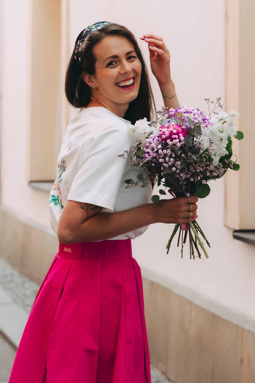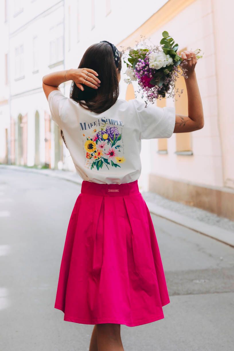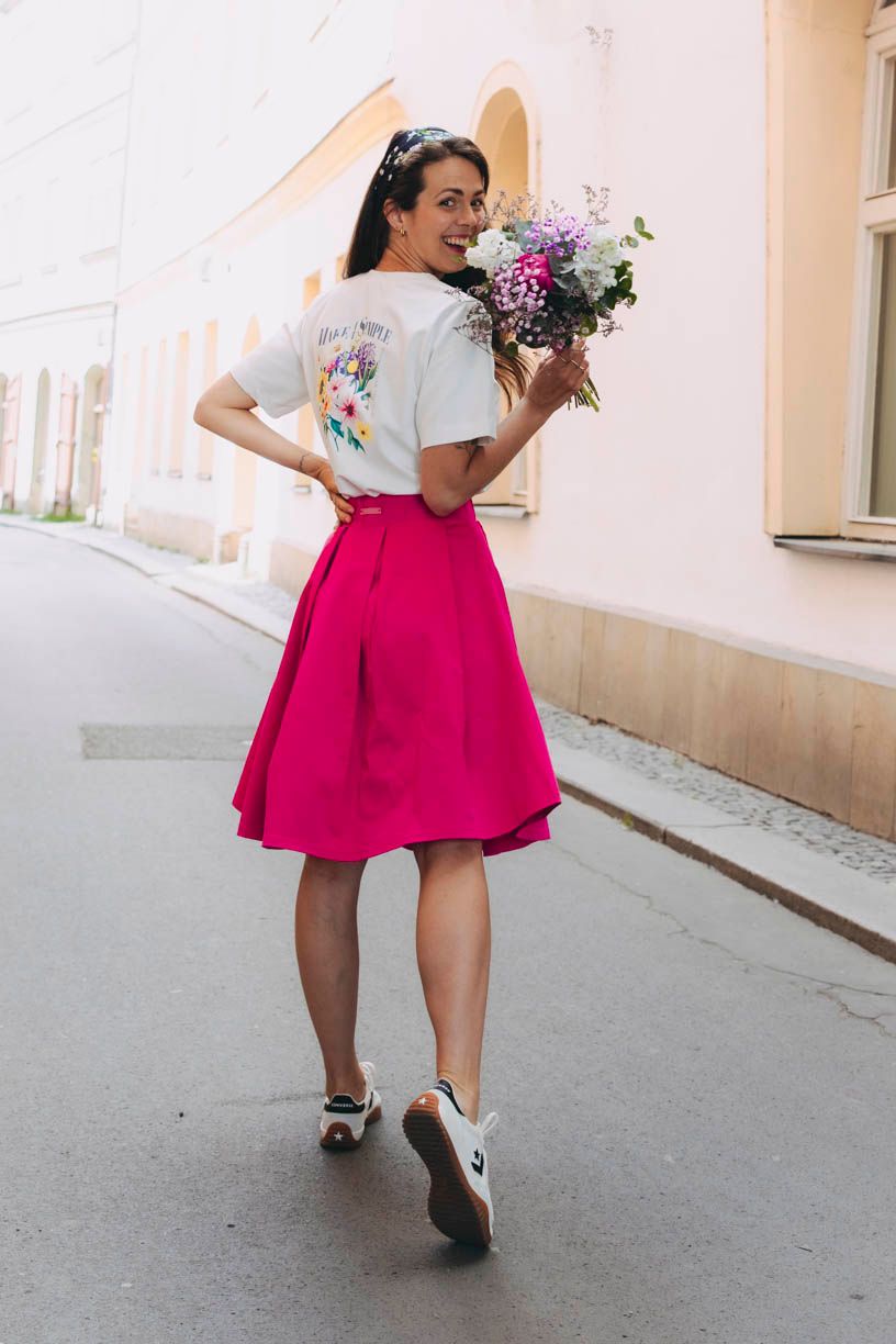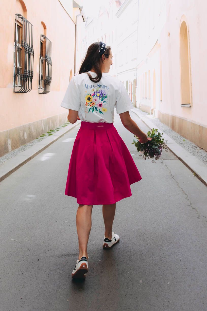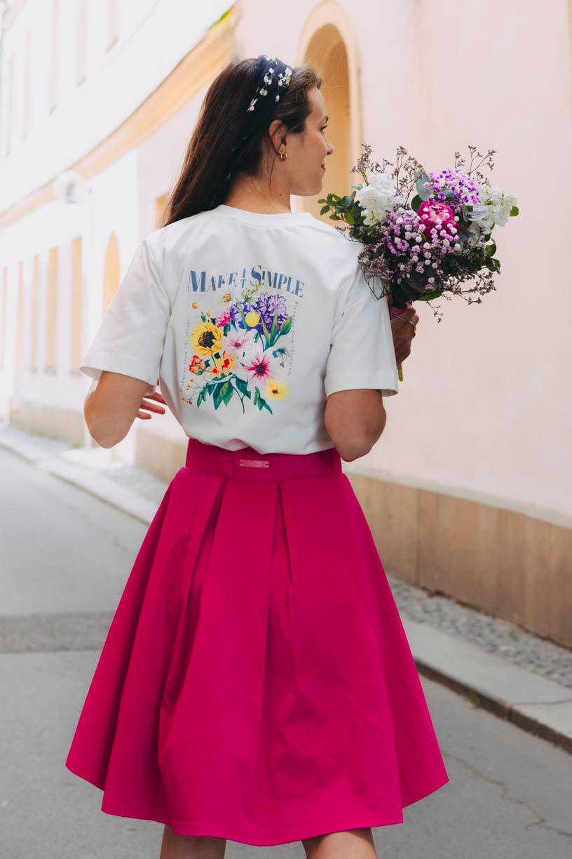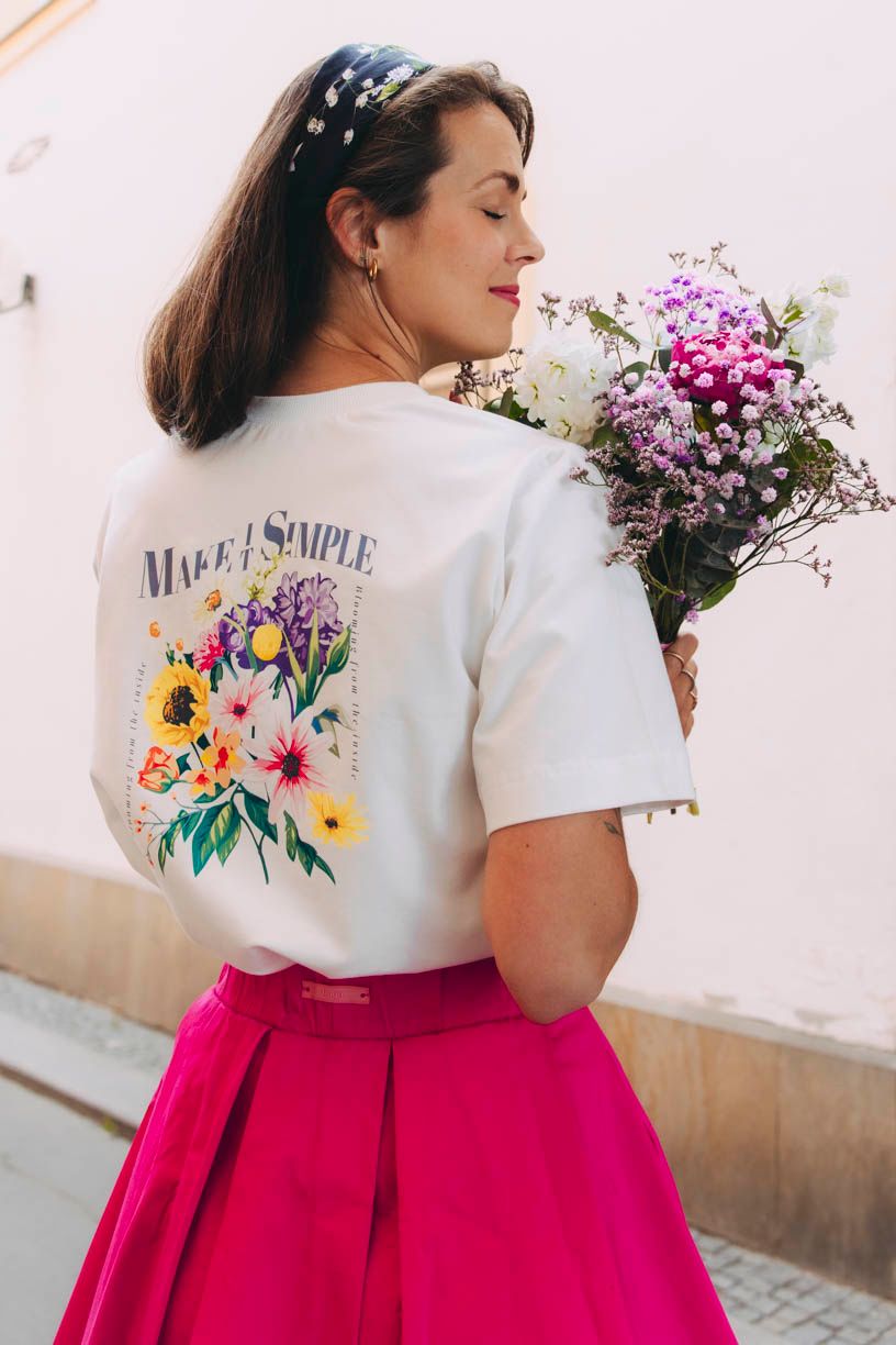 topu Nia – s kulatým výstřihem, pohodlným rukávem a z příjemné bavlny s elastanem, díky čemuž se pohodlně nosí a drží tvar i po dlouhém dni. Potisk je kvalitní a jen tak se nesepere – ale žehličce se raději vyhněte obloukem.