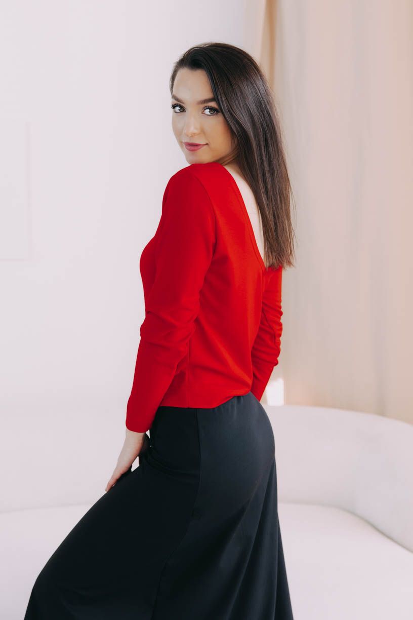 Nový top Aina Long s lodičkovým výstřihem a dlouhými rukávy jsme ušili z příjemné viskózy, takže si hezky drží svůj tvar, i když v ten den nebudete vědět, kam dřív skočit.