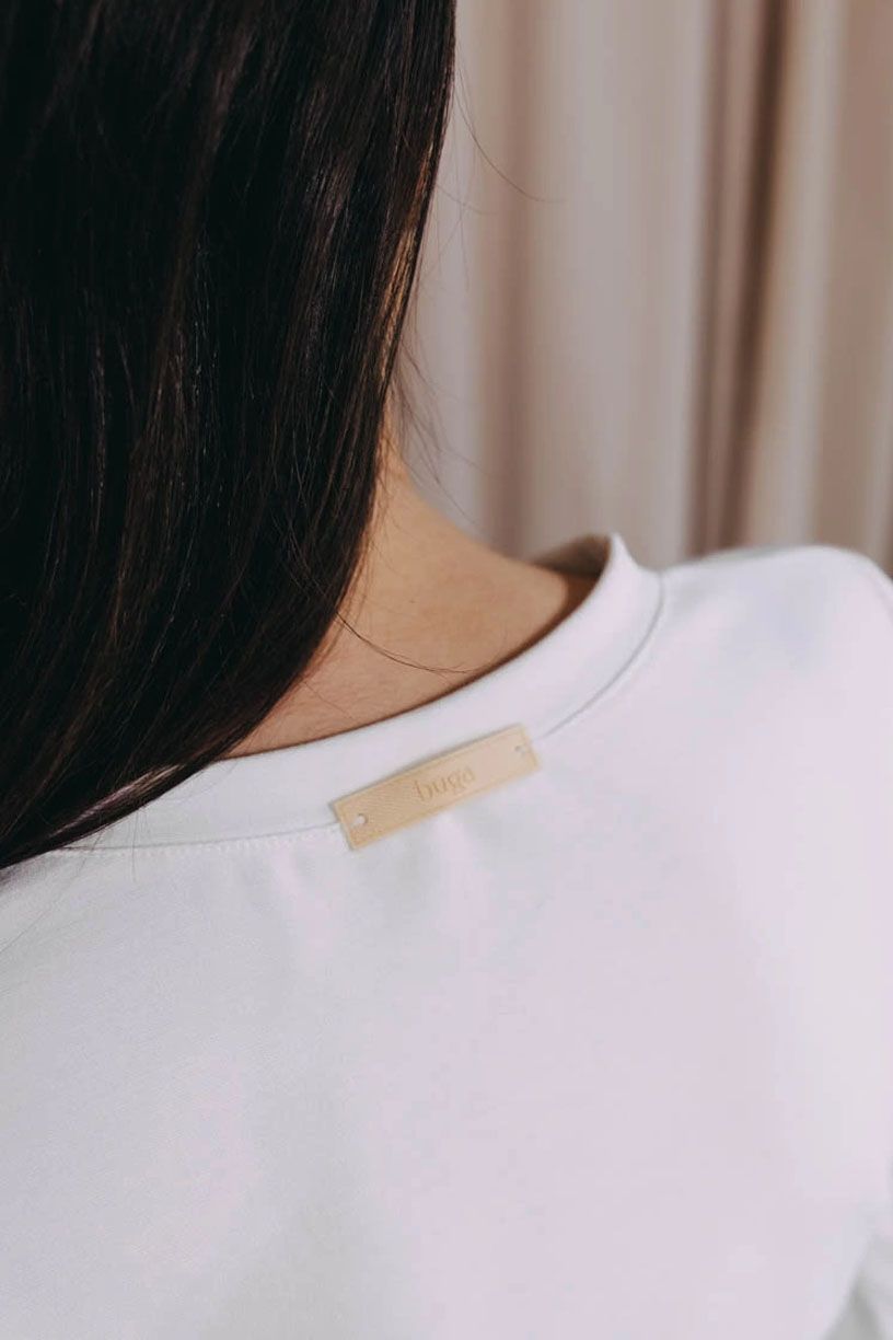 Ecru barva, stojáček, dlouhý rukáv. Hm, klasický basic, řeknete si možná. To sice ano, ale ruku na srdce, copak si nevybavujete ty momenty před šatní skříní, kdy na sobě sice máte sukni, kalhoty nebo šortky, ale kolem hlavy vám lítá zoufale znějící otázka Proboha co k tomu? Tak, do svědomí jsme vám sáhli, a teď vás pro tričko New Tatu ještě nadchnem.