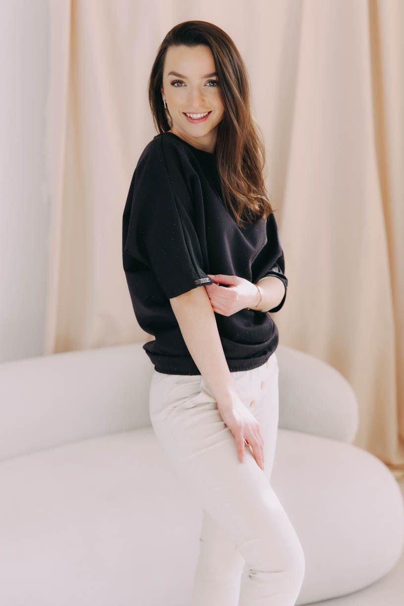 Nesmírně elegantní tričko New Yoko z pevnějšího materiálu a s netopýřími rukávy je poseté třpytkami, které vás rozzáří při každé speciální příležitosti.