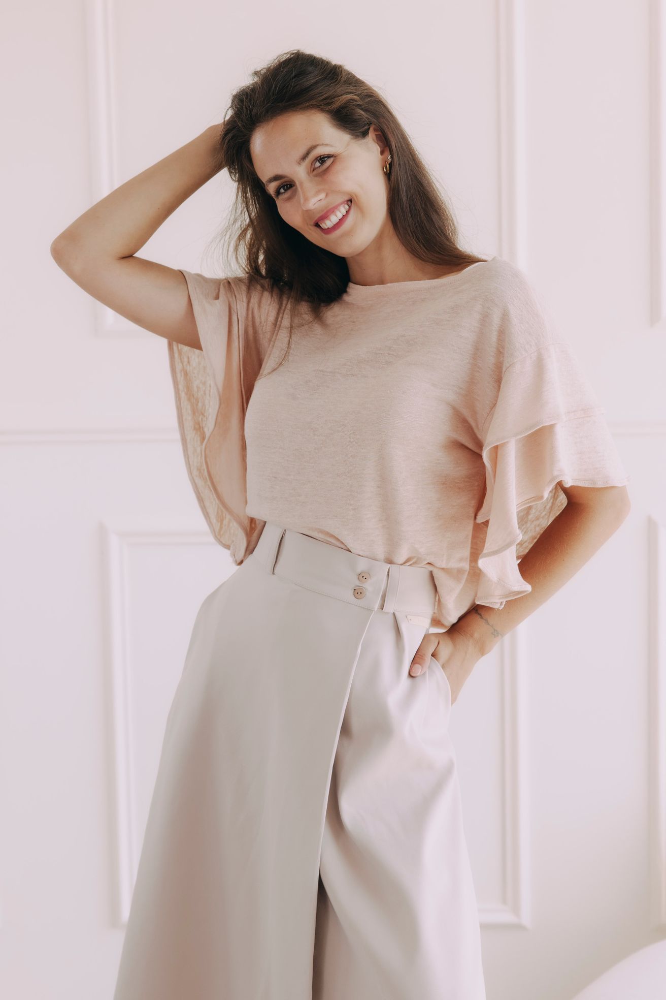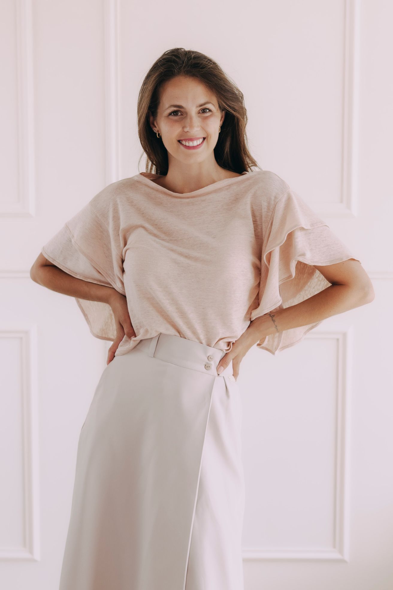 Volánkové rukávy, kratší střih a materiál, který si zamilujete. Tričko Obi není jen tak ledajaký basic – je to kousek, který zaujme na první pohled a bude vás bavit nosit zas a znovu.