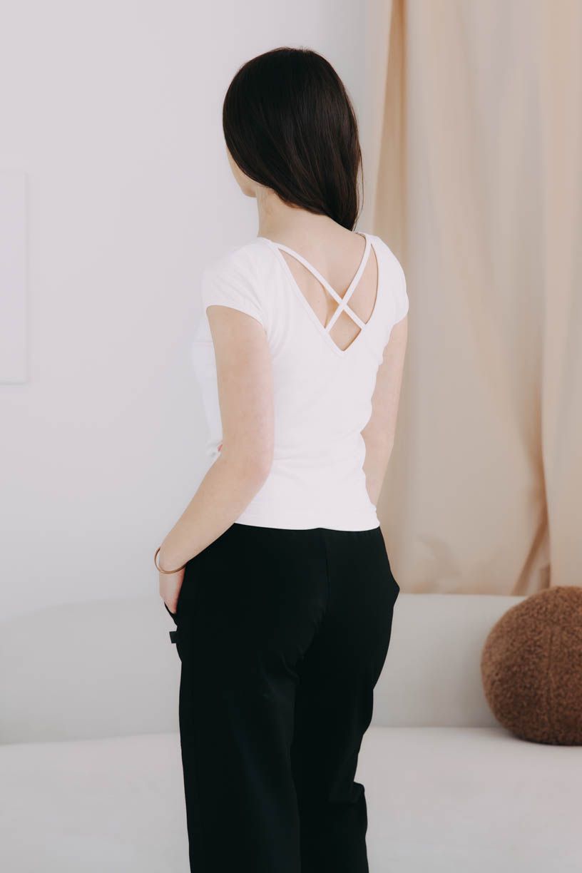 Tričkům Ola nebude moc dlouho trvat, aby vás přesvědčila, že mají své jisté místo ve vaší skříni. Díky elegantnímu detailu křížení na zádech vyšperkujete snadno a jednoduše každý outfit.