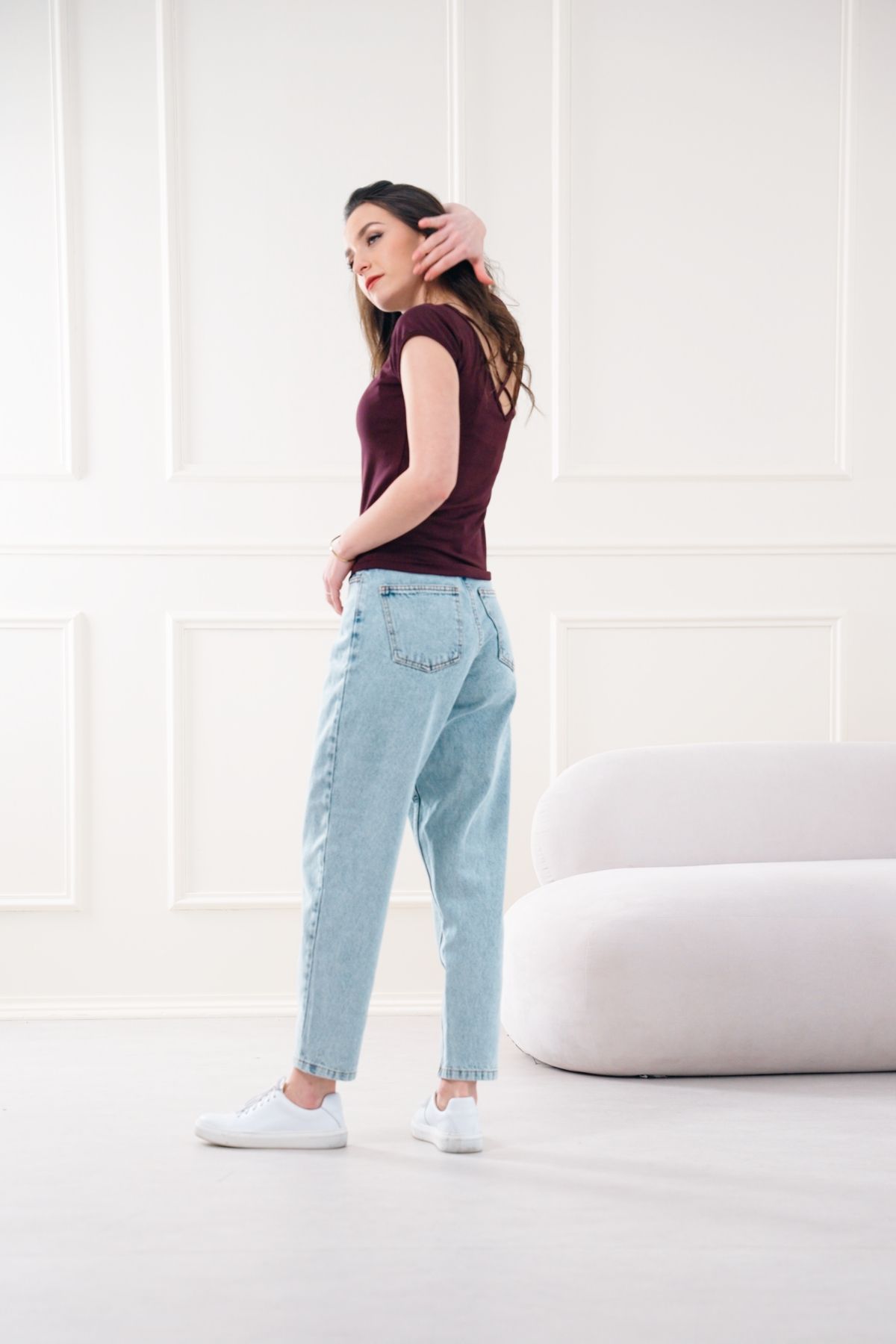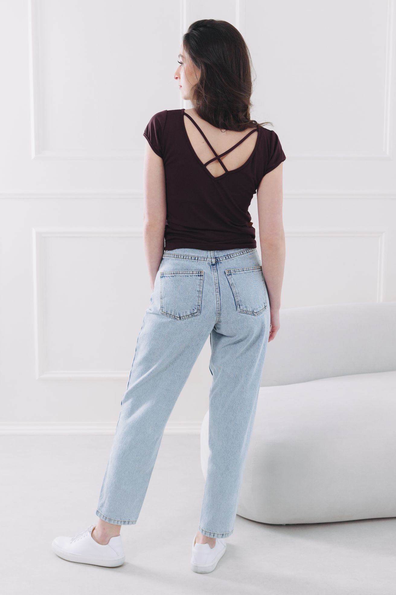 - Ležérní look: Oblečte tričko ke světlým džínám z naší kolekce Blue Soul. Přidejte bílé tenisky a vlasy vyčešte do vysokého culíku, aby naplno vynikl detail na zádech. Když se ochladí, hoďte přes sebe krátkou košili Tawia Short.