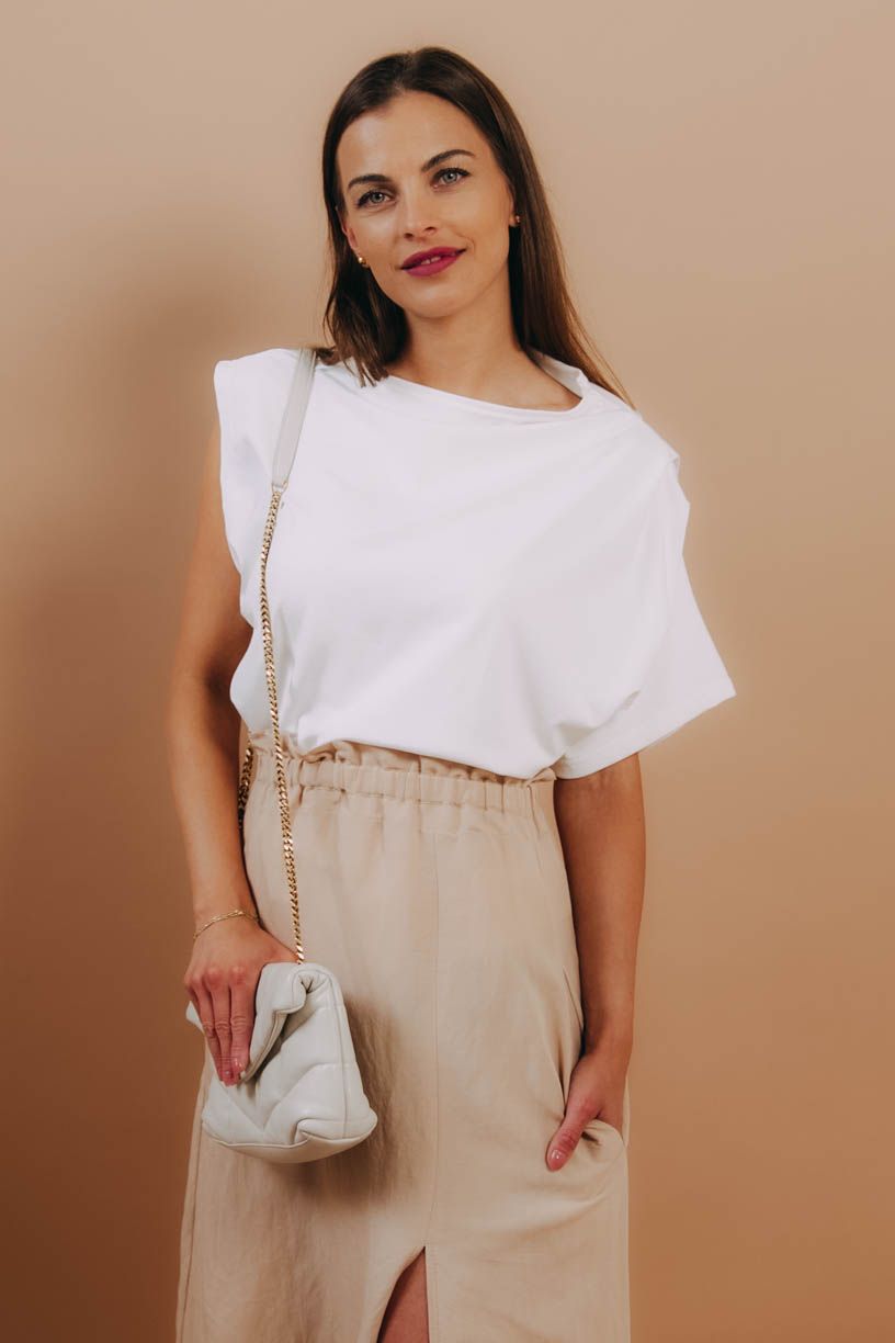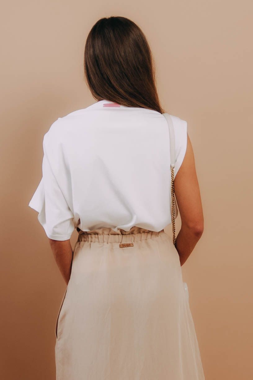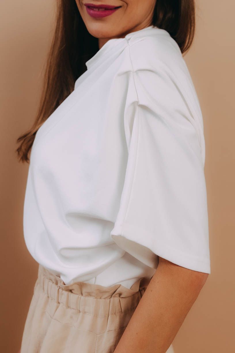 Asymetrické tričko Samia netopýřího střihu zaujme netradičně řešenými rukávy. Skvěle kombinovatelný minimalistický kousek. A přitom tak originální.