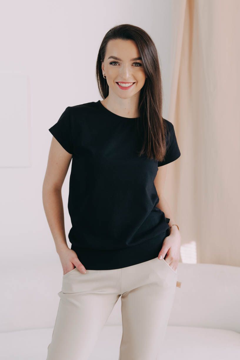 Krátké rukávy a kulatý výstřih jsou nadčasovou volbou pro každodenní nošení. Střední pružnost materiálu se přizpůsobí vašemu dennímu tempu a zajistí, že vám v Sefu bude pohodlně po celý den.